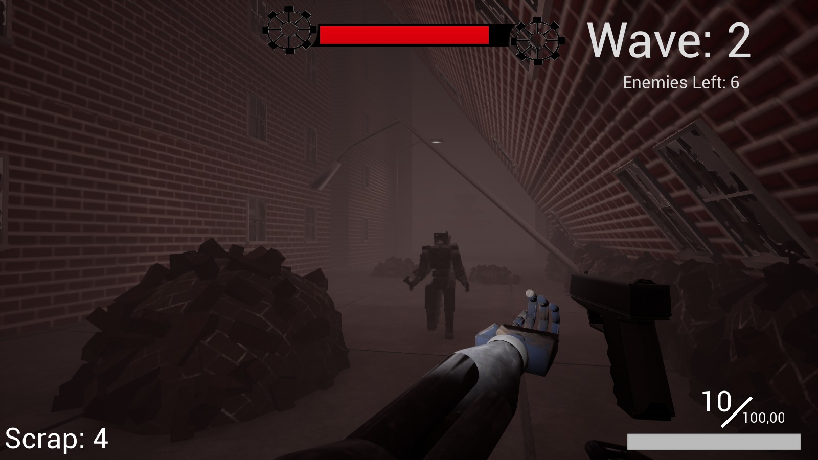You will have to fend off a single, increasing, wave of robots and you have to keep up to pace in an arms race of sheer numbers versus (you) strategy and skill as you level yourself up using the scrap metal that you salvage from surrounding robots you have killed off. You will have to make sure your upgrades are balanced and well placed such that you can properly fend off the hoards of enemies.