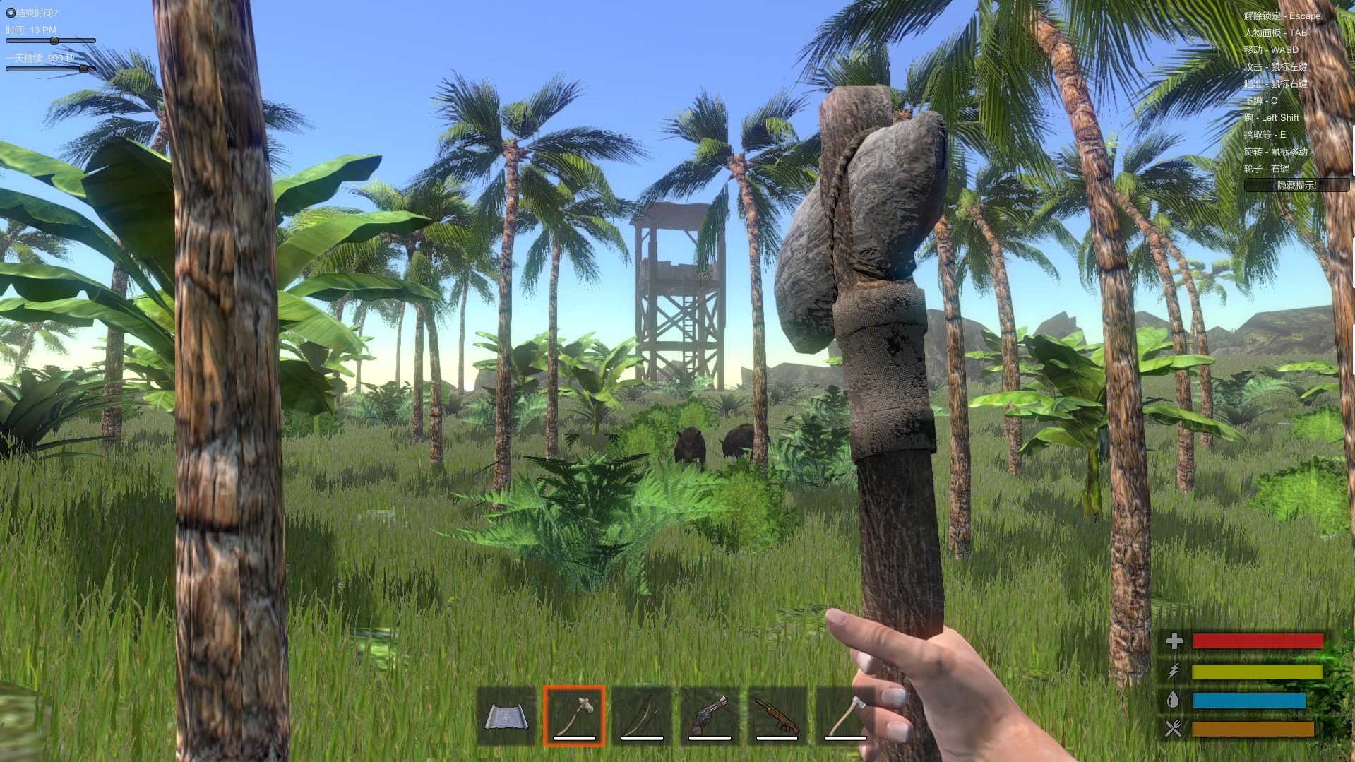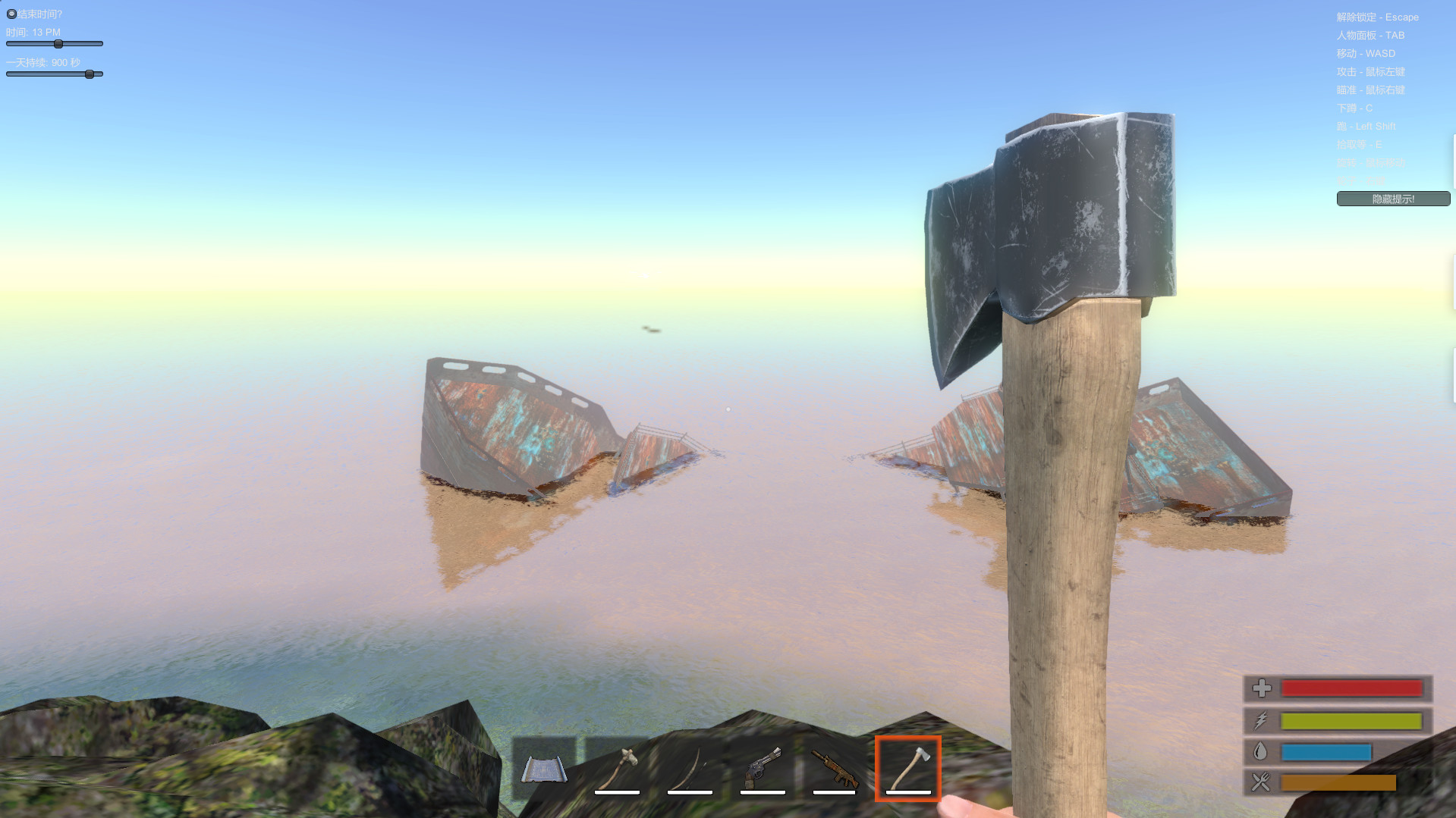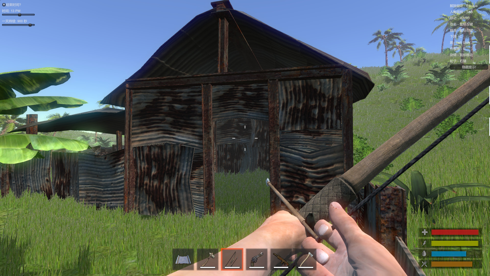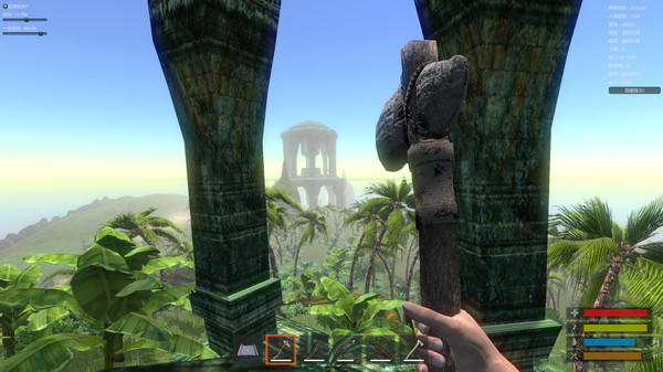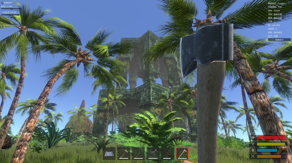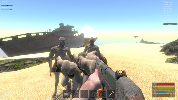 In a deserted island, the island is full of zombies, the player (from the first person perspective) needs to successfully survive and destroy all zombies, the player can use materials to build buildings, use weapons to attack zombies, kill all zombies and survive to win.