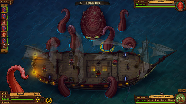 Aye Captain! takes place in the Seven Seas, each dominated by a unique faction. But now the balance is threatened by the Evil Queen of an ever-growing Empire. Plans of her Invasion land in your hands, and so you must gather Allies and strength to face the threat in turn based battles.
