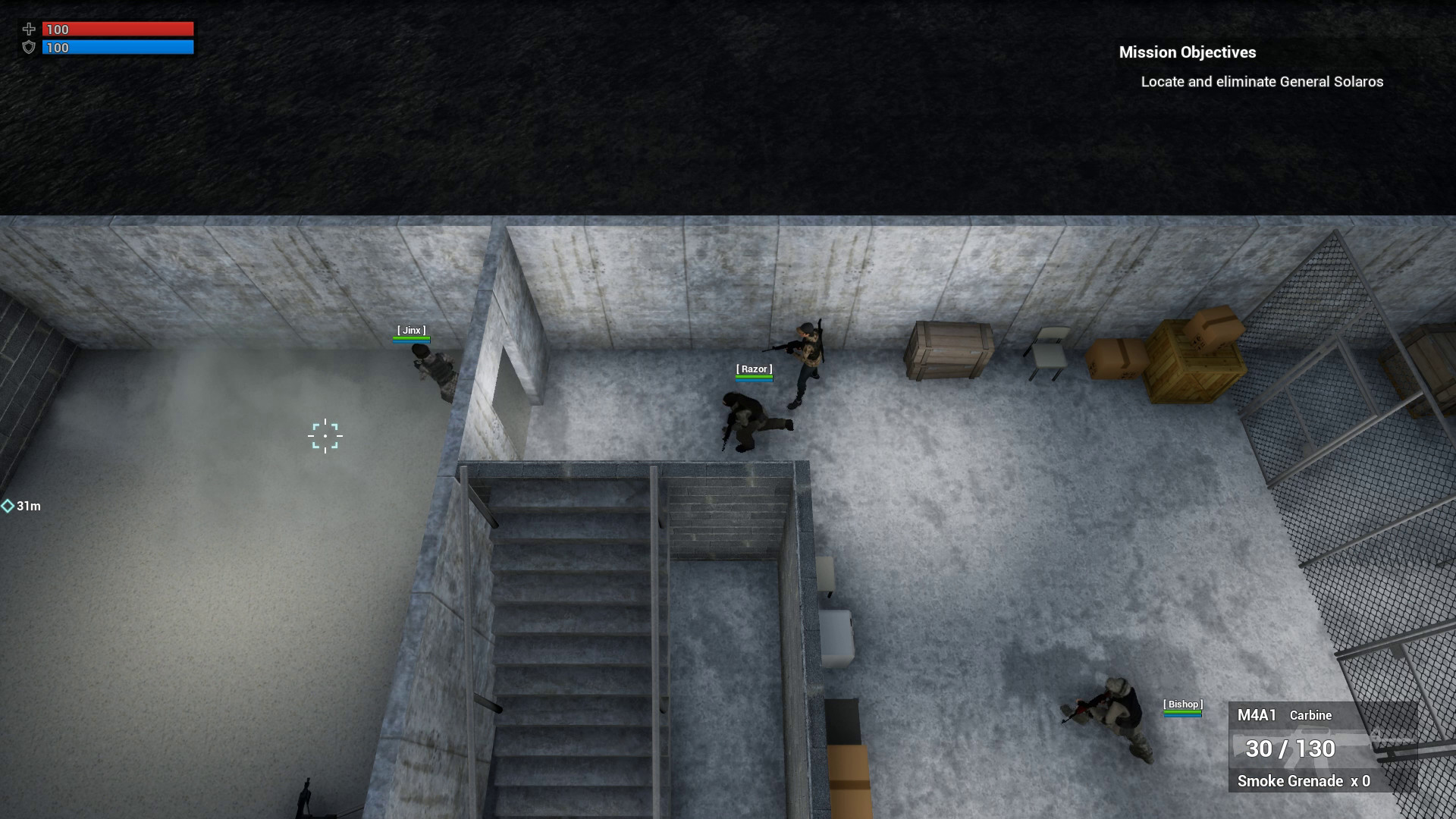• Single player with AI teammates (also available in co-op when less than four players). The game can be paused while giving orders to AI teammates.