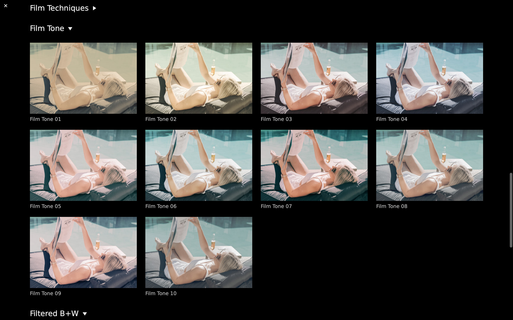 CameraBag Pro is particularly great for anyone who needs to apply the same style to both photos and videos - especially when using batch processing for large sets of media (including watermarks/branding, text overlays, resizing, and cropping).