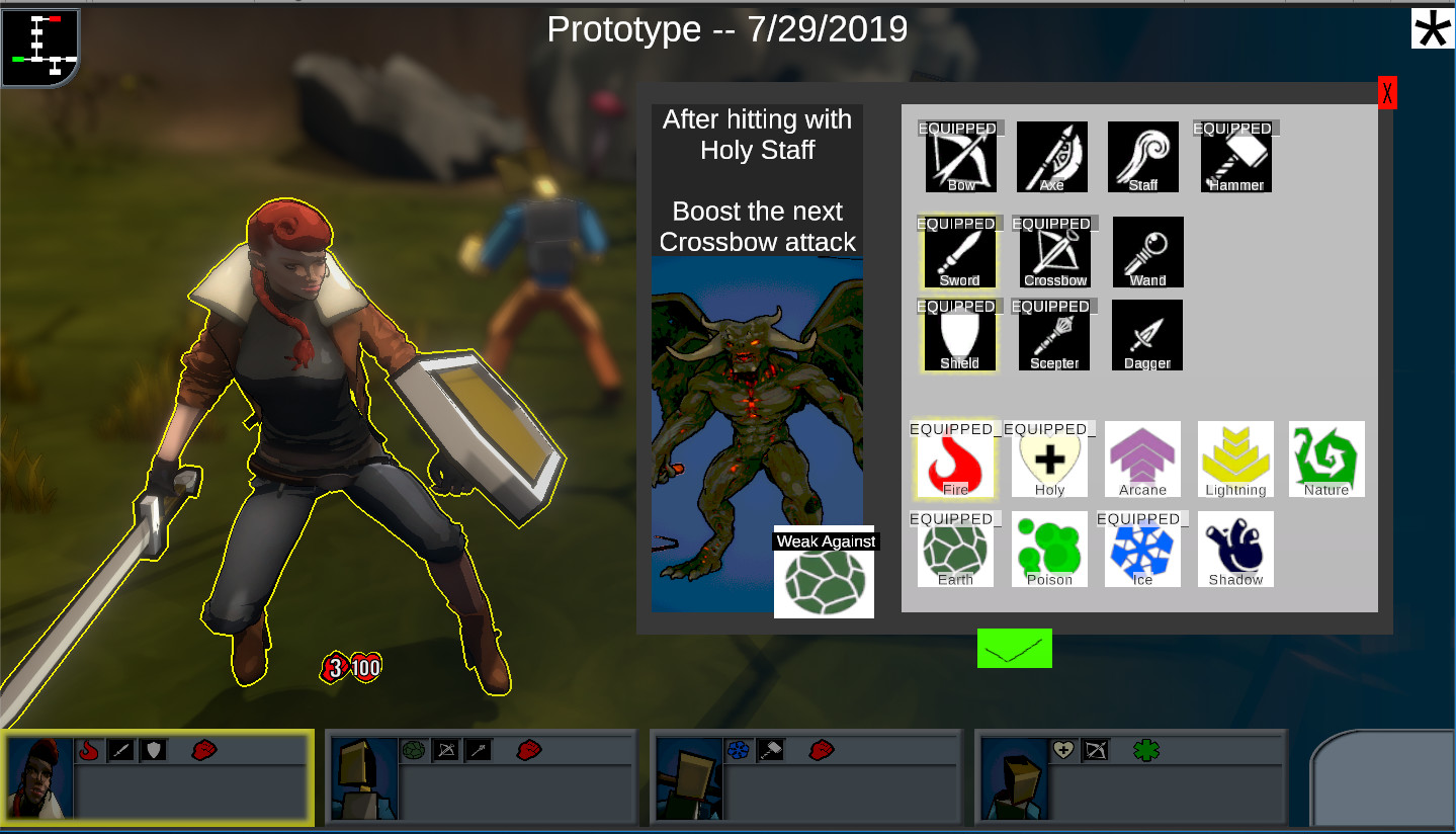 Kombiniere Waffen und Elemente, um F?higkeiten f?r deine Gruppe zu entwickeln. Beachten Sie die Hinweise und Tipps Ihres Questgebers. Stellen Sie sicher, dass Ihre F?higkeiten die feindlichen Schw?chen ausnutzen. Sobald Sie sich bei Ihren Entscheidungen sicher sind; Begib dich auf deine Suche. Sie m?ssen Ihren Plan gegen einen Dungeon voller Bedrohungen und Gefahren beweisen. Viel Gl?ck. Du wirst es brauchen.