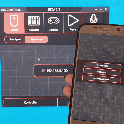 By default, from a smartphone, you can control the cursor. If this function does not work, then on the smartphone, enter the IP specified in the IDACONTROL PC program.