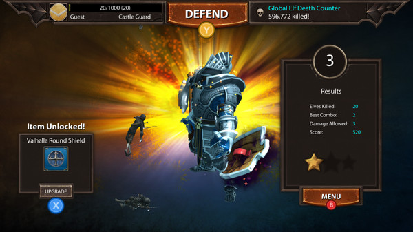 As you kill wave after wave of elven drones, you will be rewarded higher standing in the pantheon of Norse gods. Though their numbers are great, you are armed with Shalwend?s lightning quick reflexes and tremendous strength. Time your attacks and unleash your rage using the power of the Wargods!