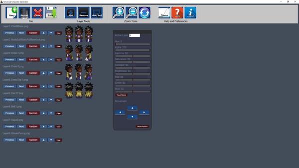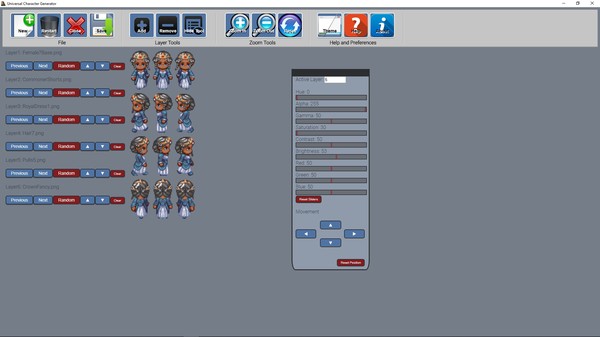 This light-weight program allows you to add an unlimited number of layers on any sized canvas - perfect for developers looking to do assembly and recolors of packs of assets, sprites, faces, tiles, or anything else you'd like to edit!
