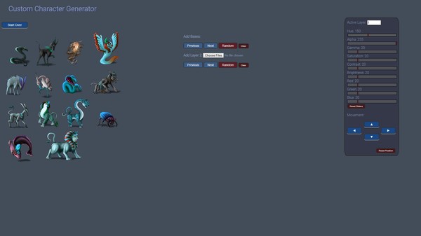 For each layer, you pick a folder that has picture files in it, then use the interface to cycle through to mix and match. Each layer also includes: