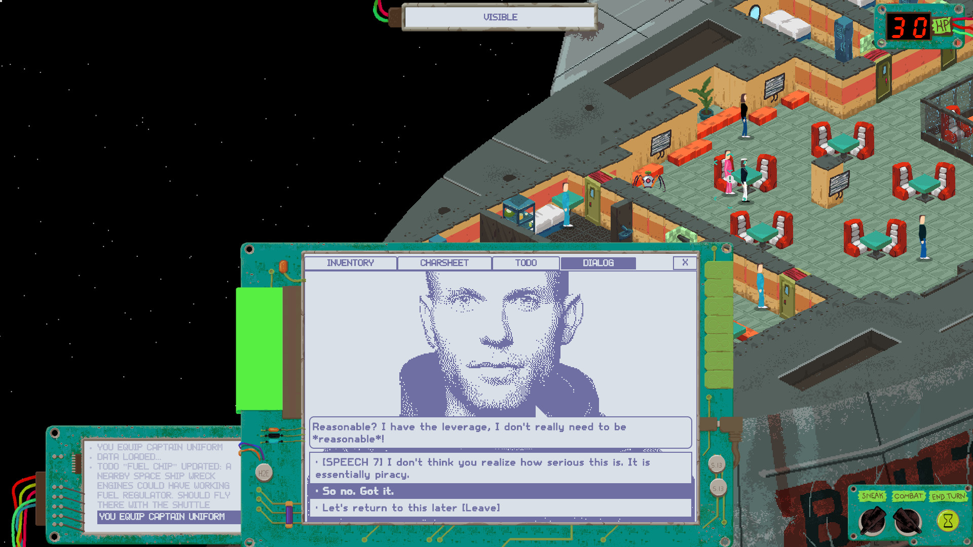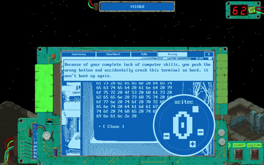 For example, characters with low CHARM value will find that often NPCs won't even talk to them because of how repulsive they are; or speech - if low, that means you are a shy introvert, unable to initiate the dialogue yourself. Lacking computer skills (scitec)? You accidentally crash terminals when trying to use them. Low tinker? Tools might break in your inept hands. Sometimes even too much is not good - too strong (PHYSICAL) and you cannot squeeze into vents thus unable to make use of some shortcuts. And so on - your character stats will significantly affect your gameplay style.