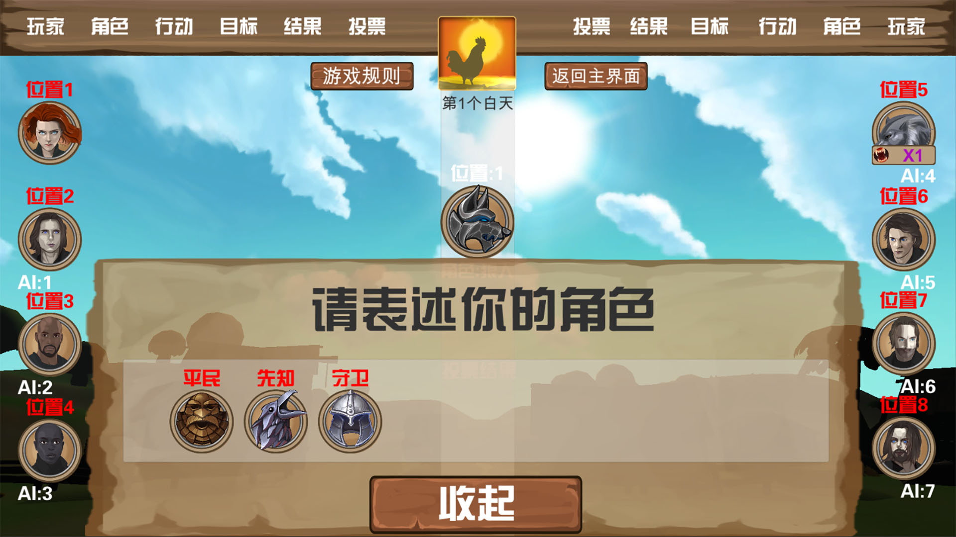 The Human camp has: Seer, Guard, and four Civilians.