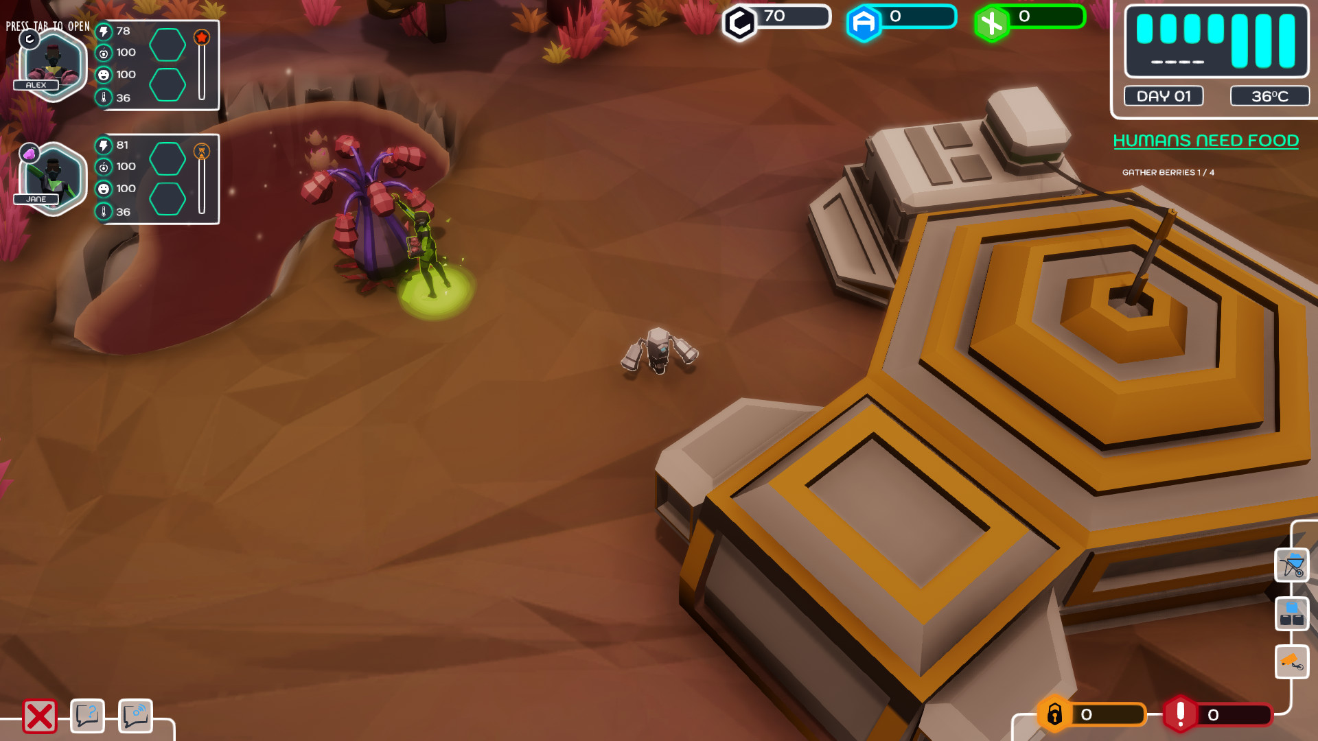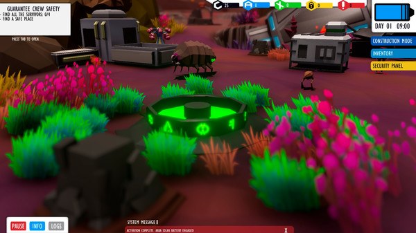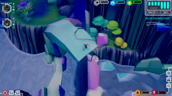 Explore the 3D Low Poly alien planet and assign work tasks to your people. Gain resources to craft tools and gear while unraveling the secrets of a long civilization and the reason it is gone. Be quick though because at night it is too dangerous to walk about. It is then that the player must prepare and distribute rations, establish guard duties and plan future expeditions.