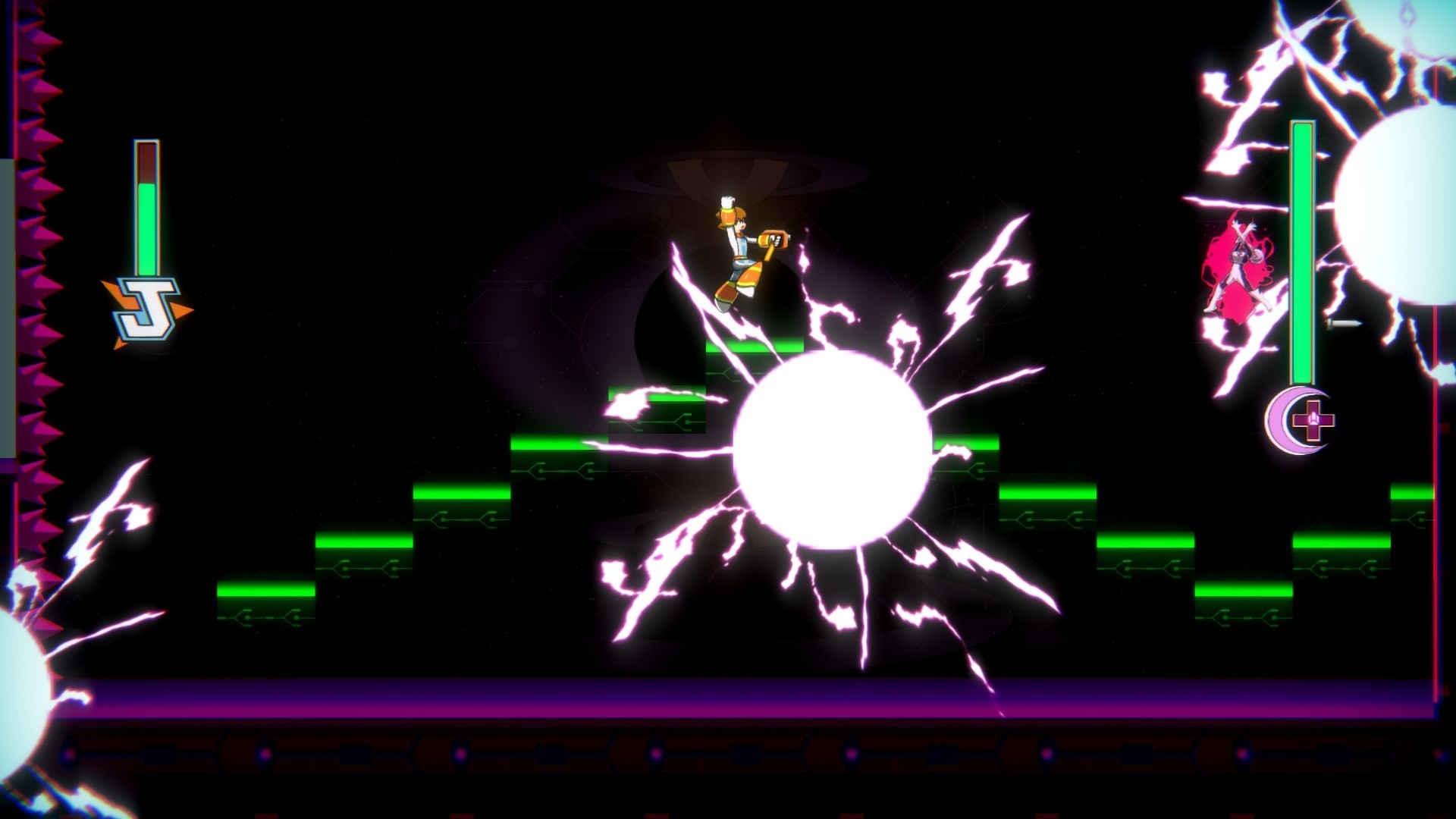 Set within the Systema Megastructure, you follow the adventures of Jeremy, a cybernetic construction worker armed with a large nail gun, and Alex, a cold vampire with a blade forged from blood. Through two separate campaigns, fight your way through machines and zombies as a mysterious alien race threatens to destroy humanity.