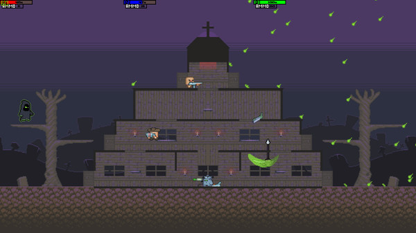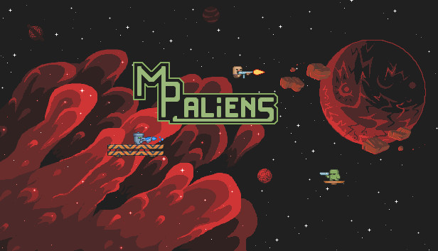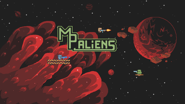MPAliens - 2D Arena Platformer. It's a local party game with intense PVP matches, hardest COOP missions and different Bosses on different maps.Features :- 17 Weapons- 6 Maps- PvP- COOP!- BOSSES!- Different platformer mechanics- Great chiptune by RWGSimple, understandable movement Slide ShotTeleport ShotTraps and special mechanics