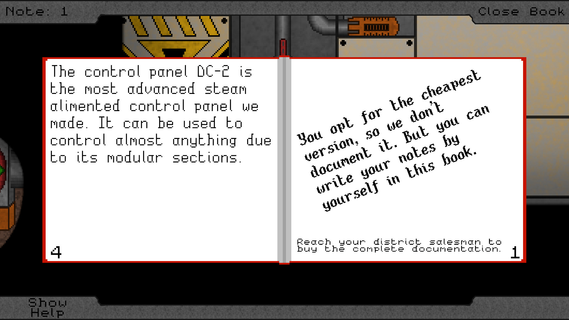 It's an escape room game, where you interact with a panel, complete puzzles and make your way to the exit.