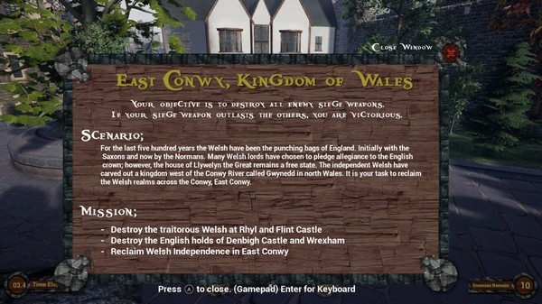 Set in North Wales during the High Middle Ages, you fight the English for your homeland and birthright, reliving the historic battles of Owain Glynd?r, the great Welsh Hero! Traverse across the countryside, reclaiming each kingdom one by one until all of North Wales is once again yours!