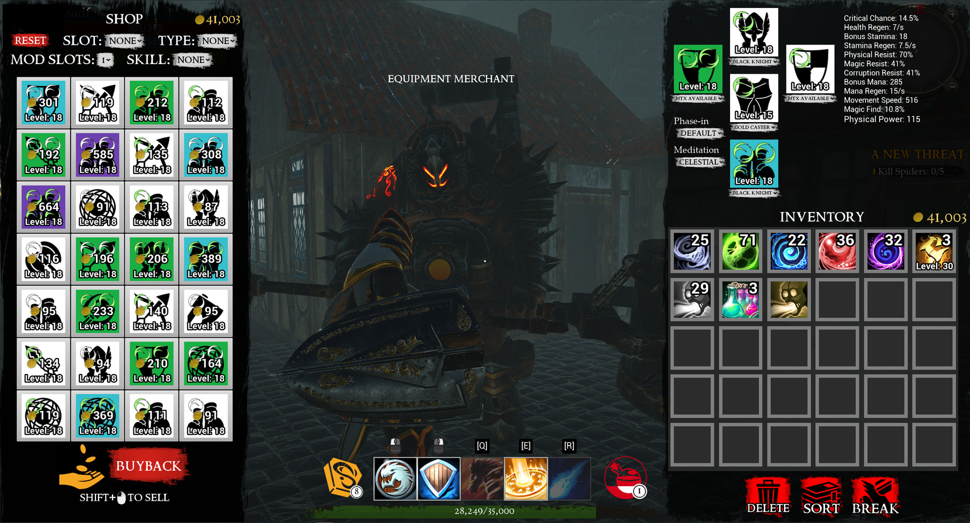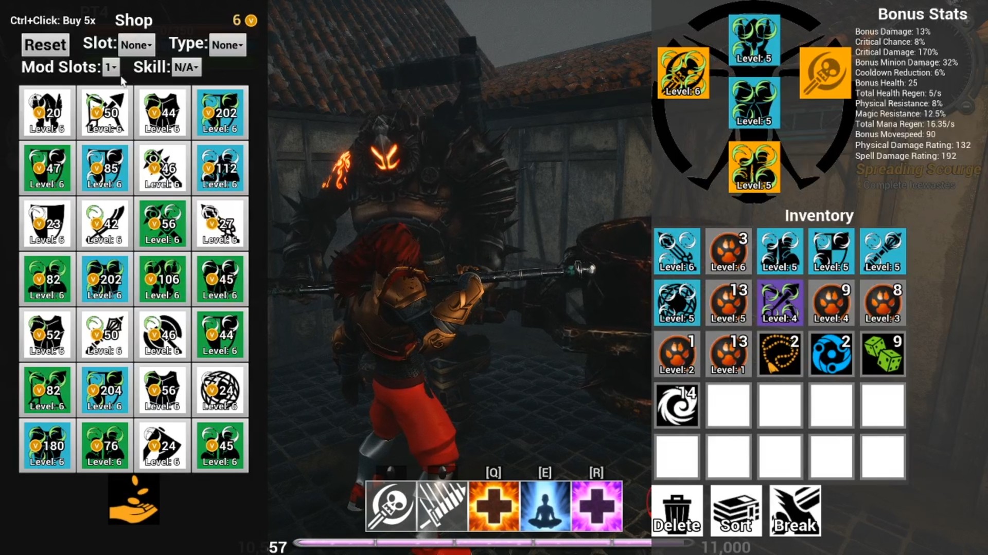 You're in control of every aspect of your gear. Special crafting items drop from enemies and can be purchased in Town. These items allow you to upgrade your items, change their skills, and reroll their mods (sometimes to powerful Legendary mods).