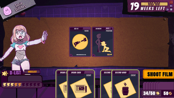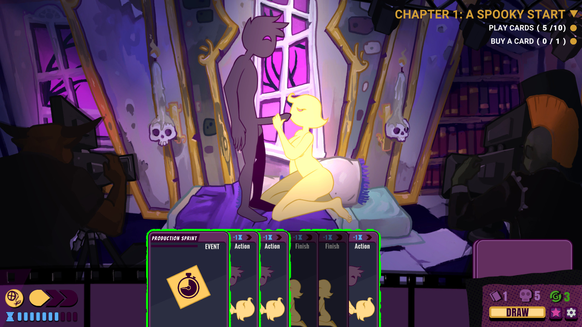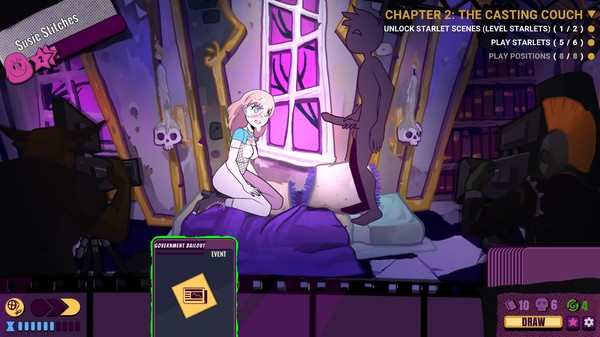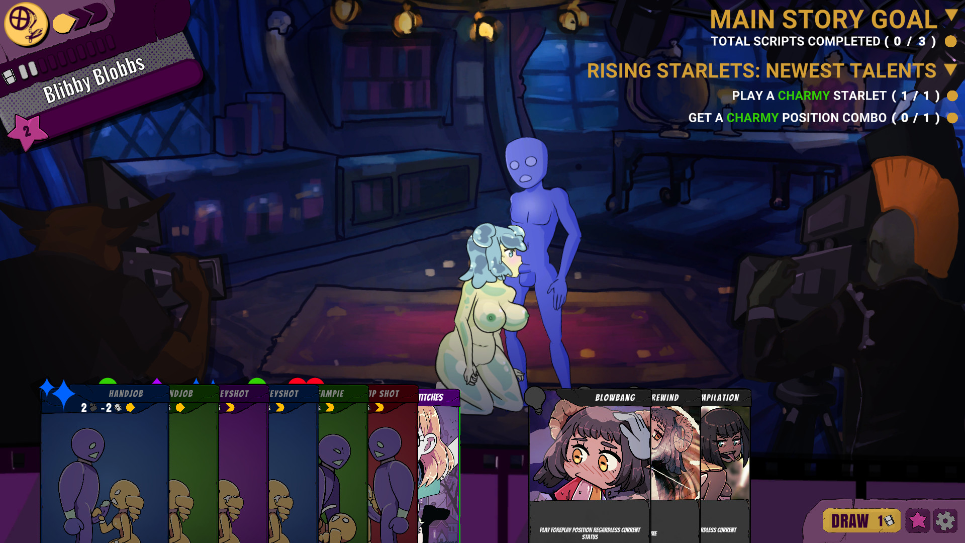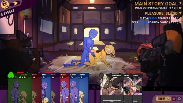 Half card-based gameplay, half erotic visual novel- you will need to get creative in order to complete your films, meet your quotas, and stumble upon new sexy scenarios!