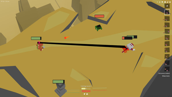This is a game where you train Derklings, a creature with a neural network brain, to fight for you! The game takes place in a wonky western-themed MOBA setting, and as you battle other players you earn upgrades and items for your Derklings. The challenge is to figure out the best loadout and training strategy for your Derklings!