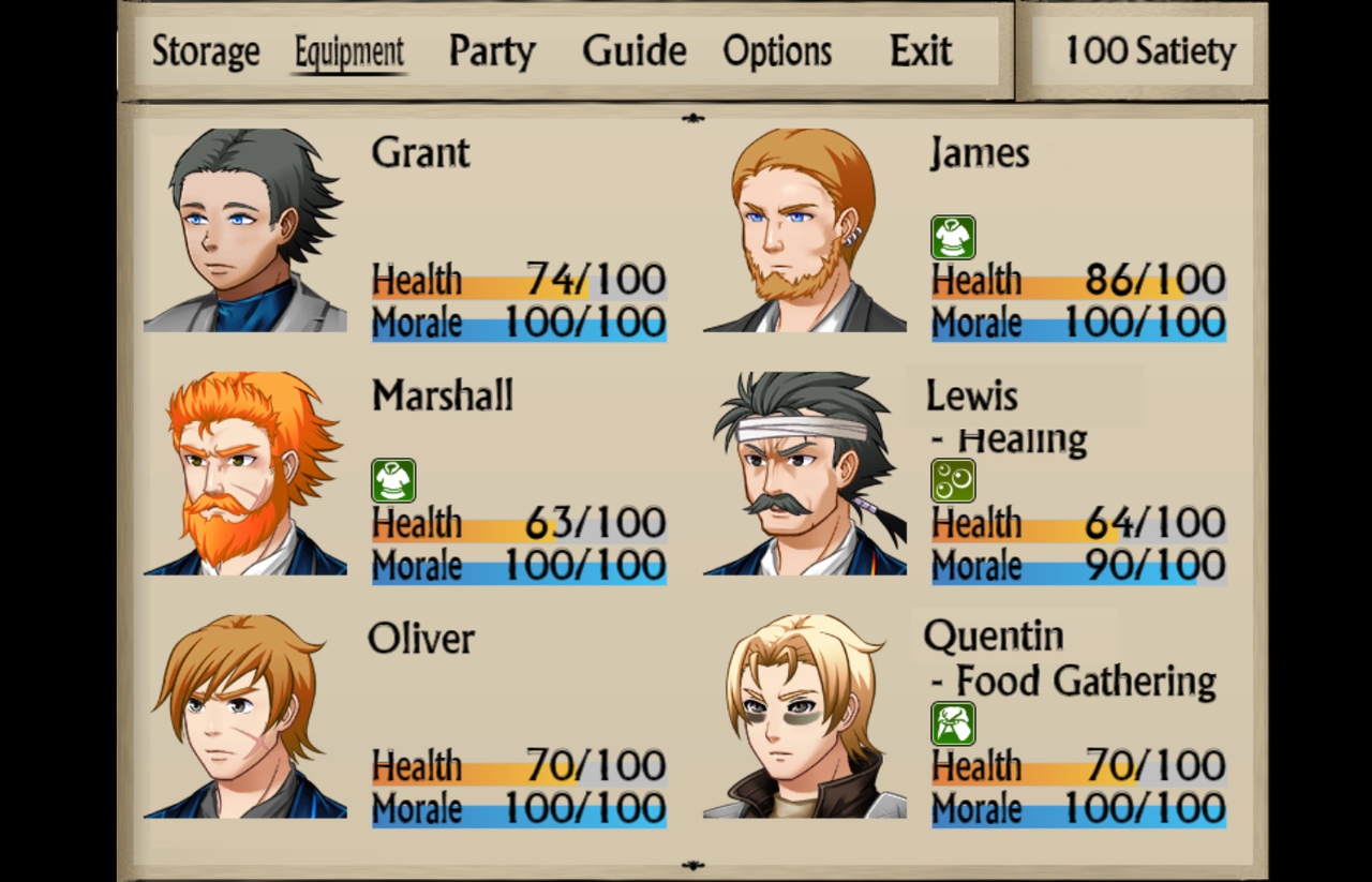 Captain! We are shipwrecked on an unknown land! Several members of the crew are dead. The ship was driven onto land. The sailors managed to take it apart and put up a camp. We are very far from our homeland... I'm afraid we are stuck here for long. We haven't got much food. We should send someone to check out the surroundings and gather some food.