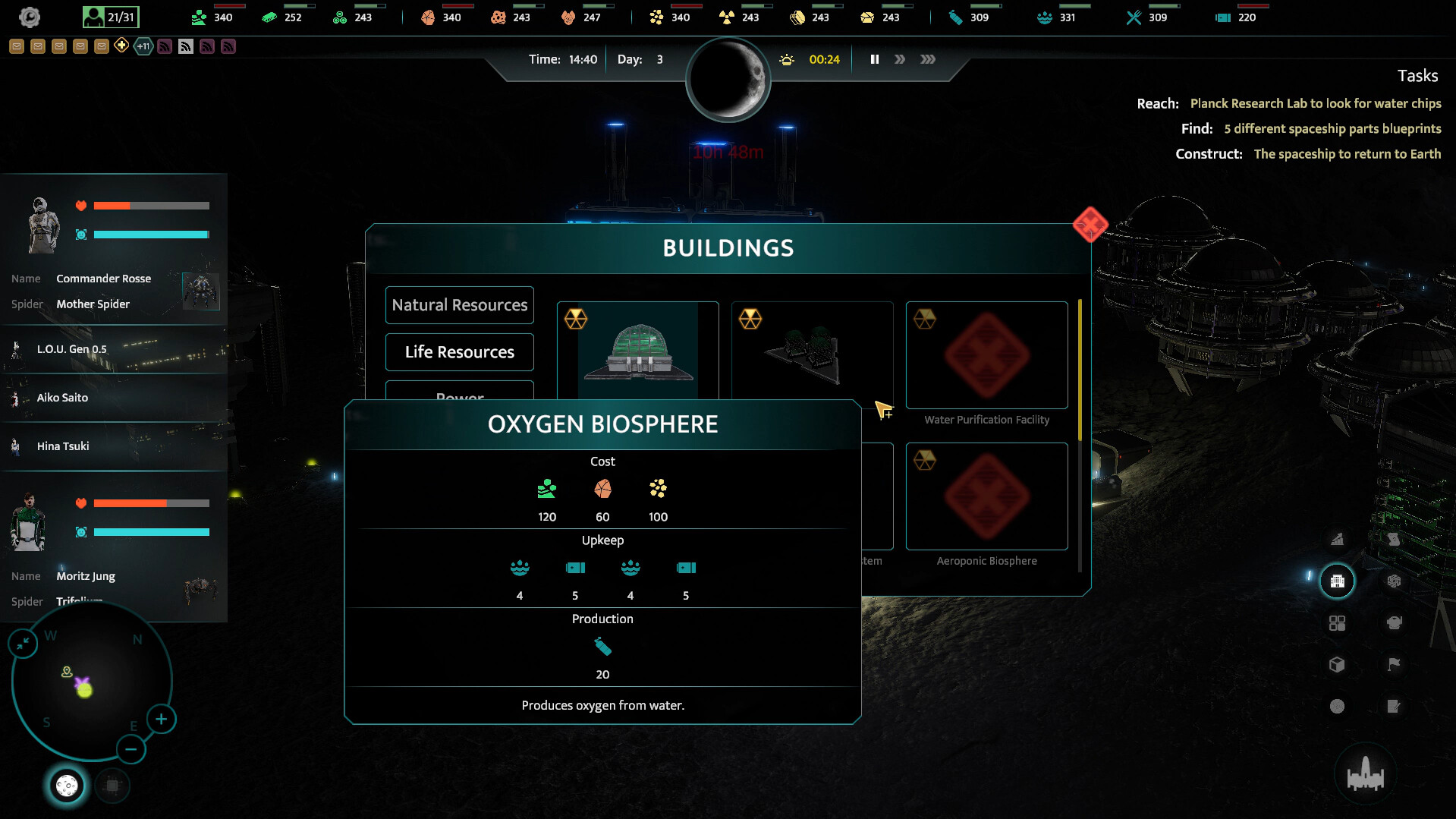 Der Mechaplex hilft dir beim Überleben. Errichte neue Gebäude auf ihm, erforsche neue Technologien, verbessere die Fähigkeiten deiner Crew und erkunde die Ebenen des Mondes. Entwickle neue mechanische Prototypen, die dir bei bim Abbau der Mineralien helfen oder konzentriere dich auf die Geschwindigkeit deines Konvois, um der tödlichen Sonne zu entkommen. Du darfst dich nicht zu lange an einem Ort aufhalten.