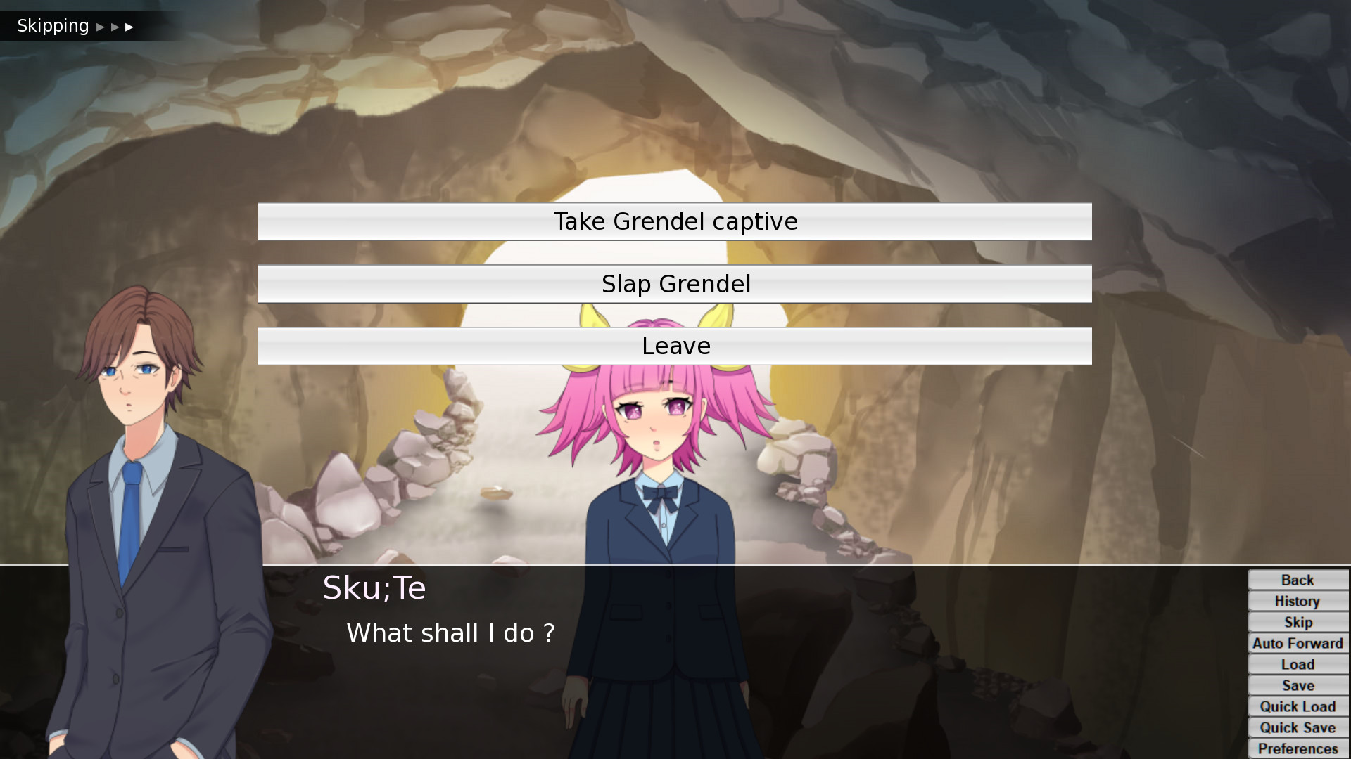 - Funny and dramatic story, detailing how the duo of the protagonist and Grendel Jinx met