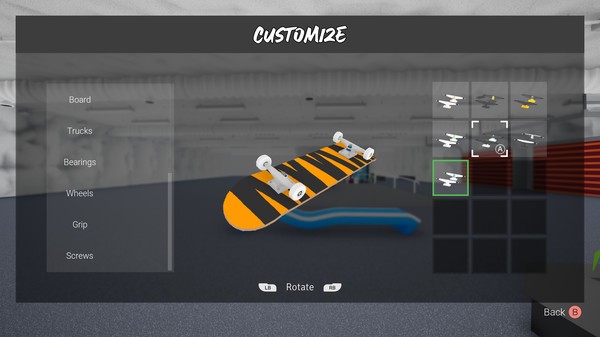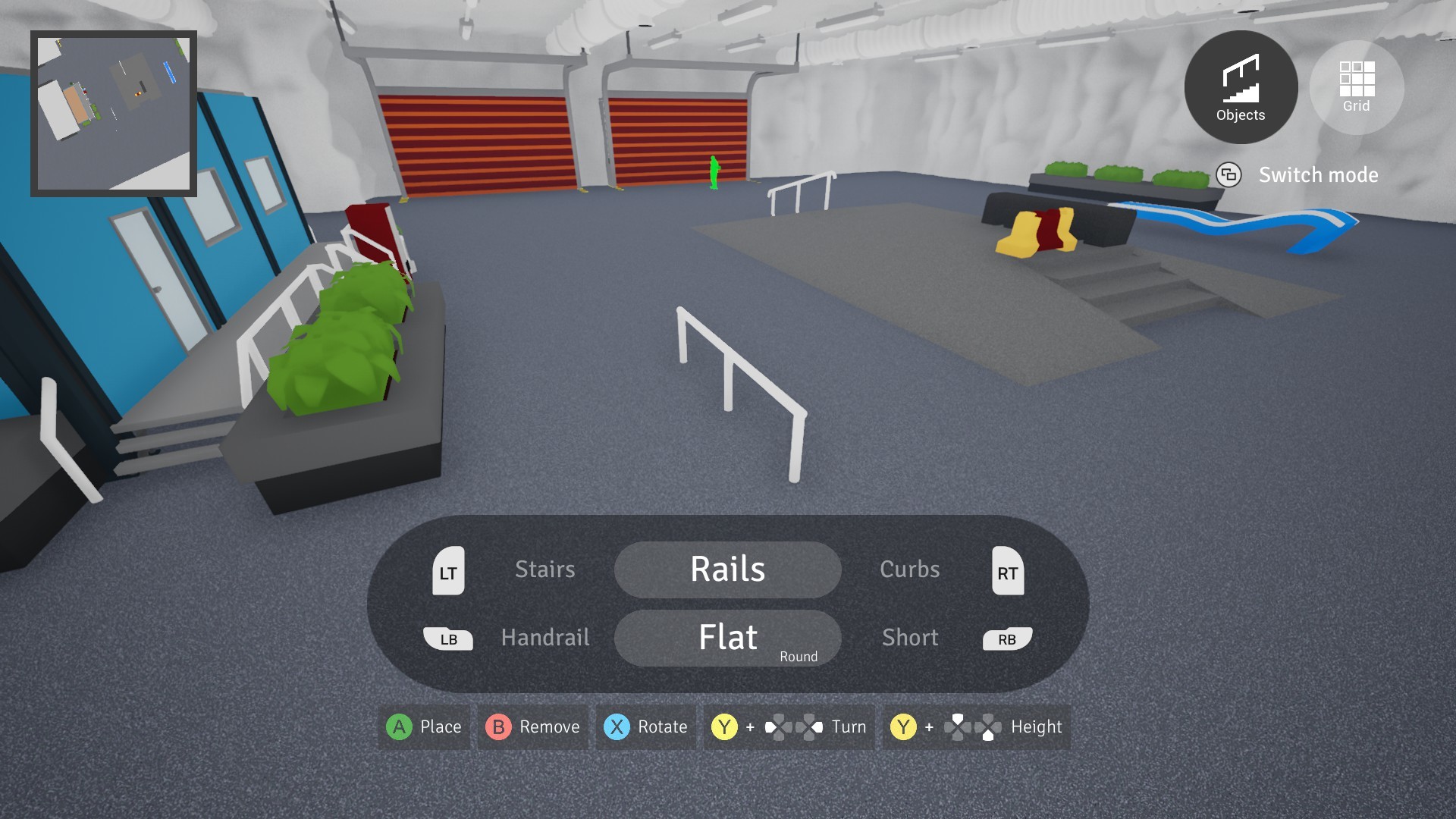 In-game editor allows you to build skatehall and modify them with many different obstacles.