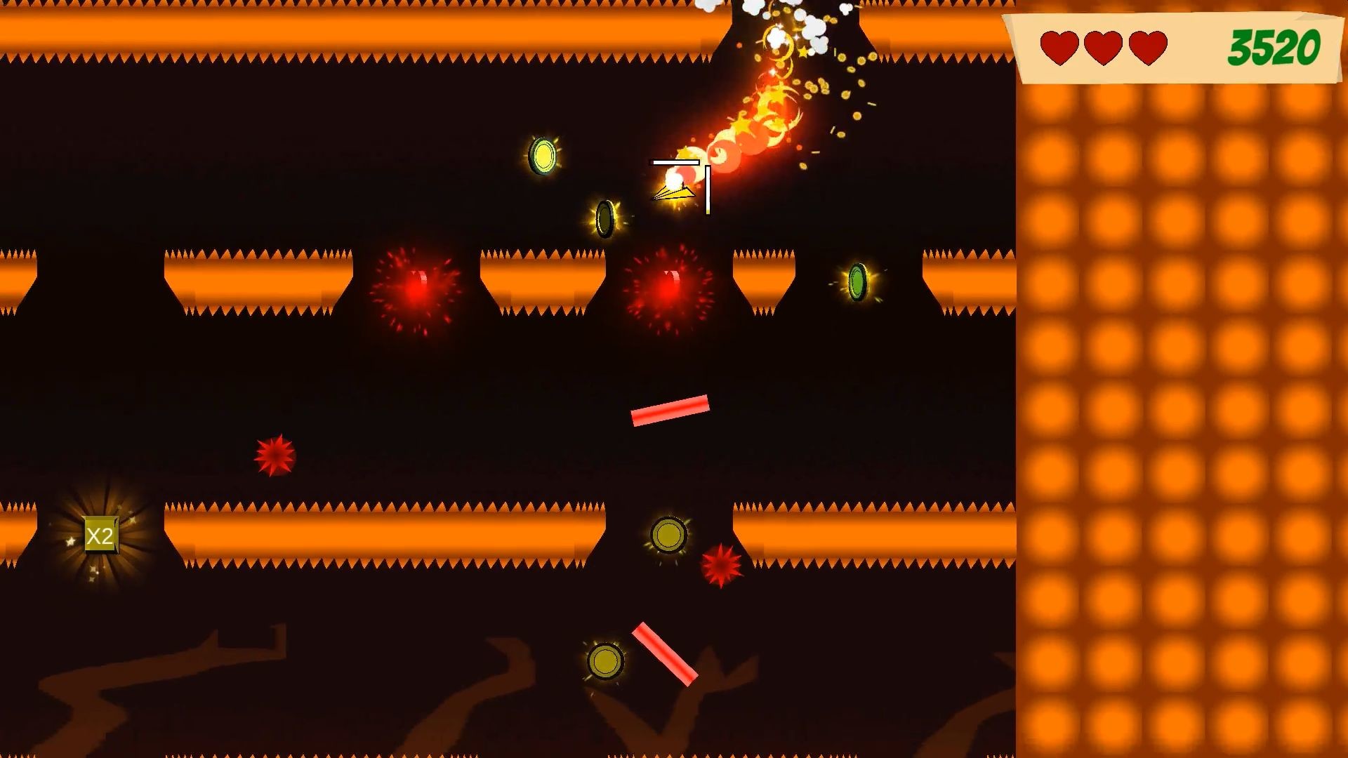 - You can steer left, right, down and activate an updraft to avoid crashing.
