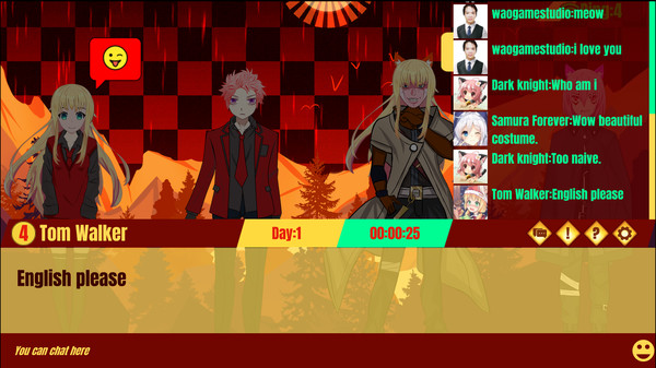 You can chat with your friend in visual novel game style. You can even use this game as a tool to make some story script for your visual novel.