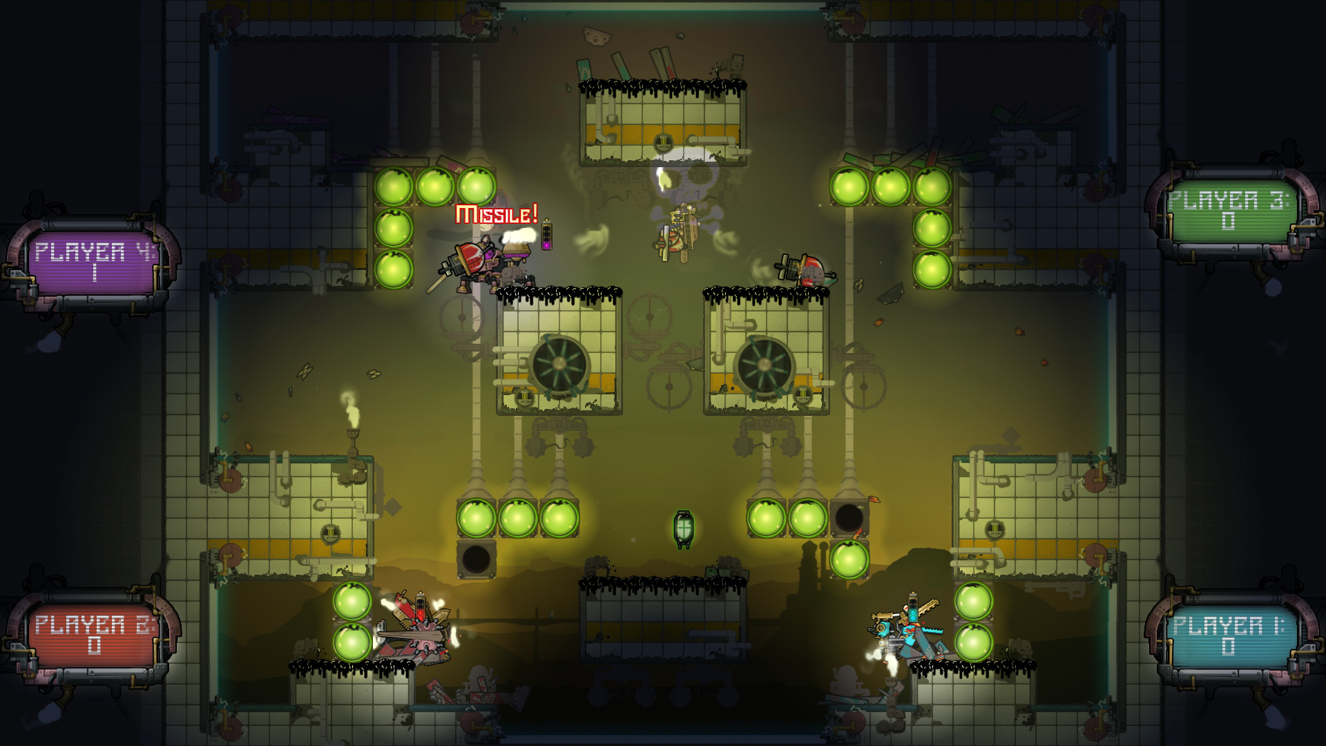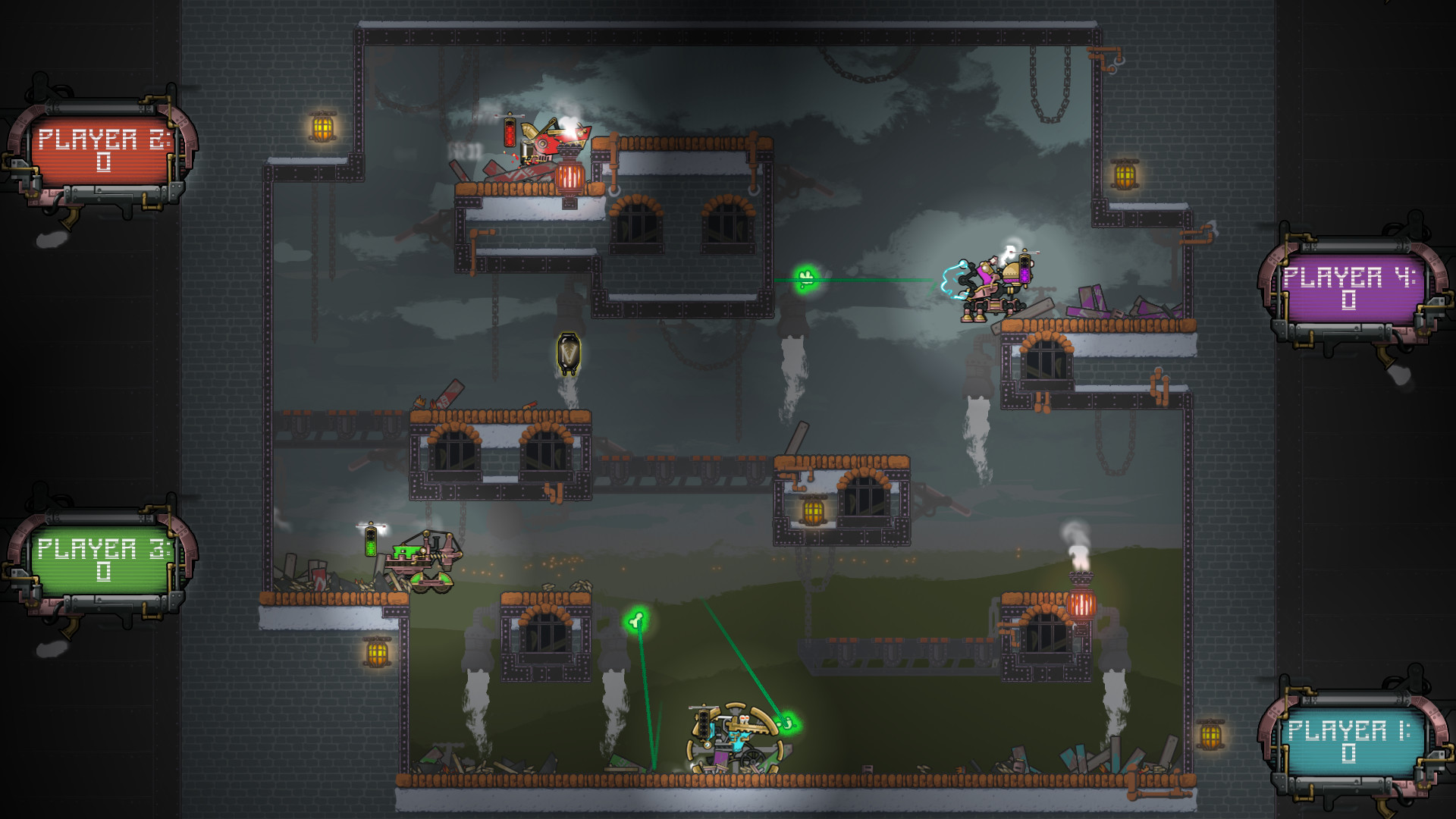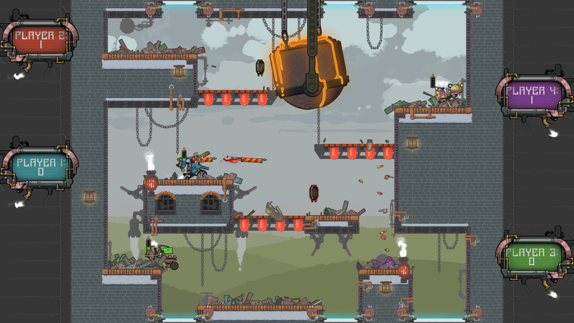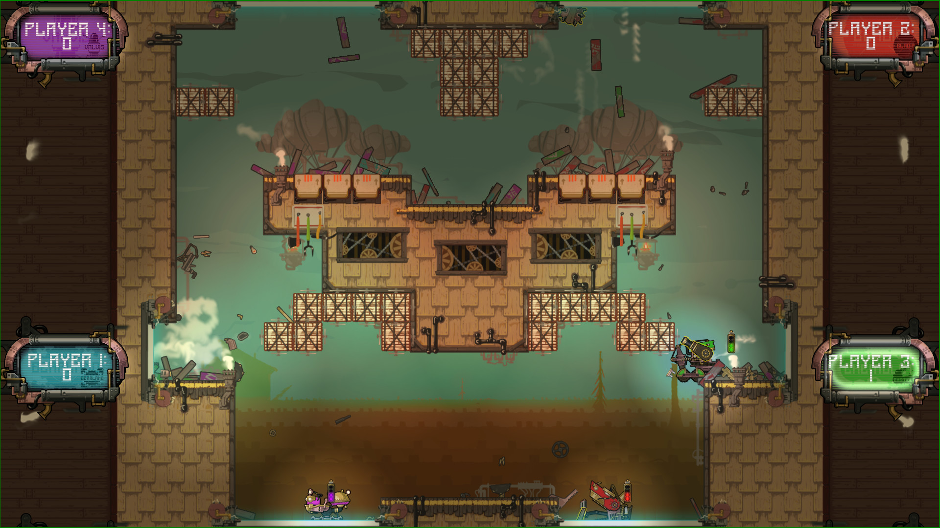 Now it?s YOUR turn to let off some steam in Nation Breakers: Steam Arena- the 2D-action-steampunk-destructathon-platformer! Fight to the industrial beats of the music in incredibly fast, family-breaking, controller-flinging exciting matches! Pick your steam-bot. Destroy your enemies. Dismantle your friends. Delicately disassemble your loved ones (just joking, do not literally do this). Every projectile and death showers the arena with robotic debris, leaving an ever-growing bed of bits on the ground. The winning steam-bot takes home the trophy over the rabble in honor of their nation!