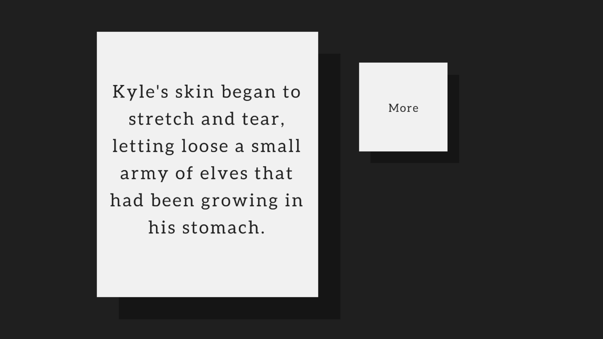 In the cold, barren midwinter, a sole figure rises from his slumber. Kyle, readying his day, looks on that which he will encounter. . . OH MY GOODNESS, WHY ARE THERE ELVES GROWING OUT OF HIS SKIN? WHO GAVE THAT CHILD A CLAYMORE??? WHY IS RACHEL TURNING INTO A PUSS LUMP OF FLESH????