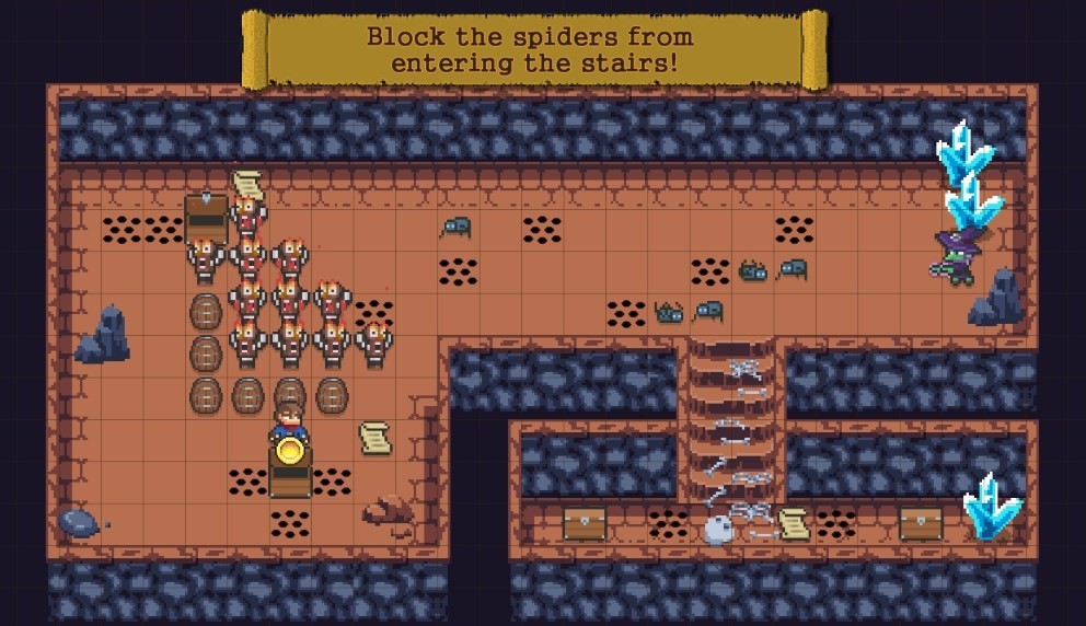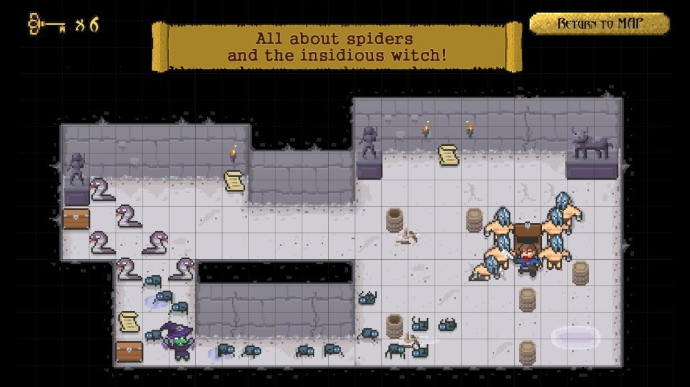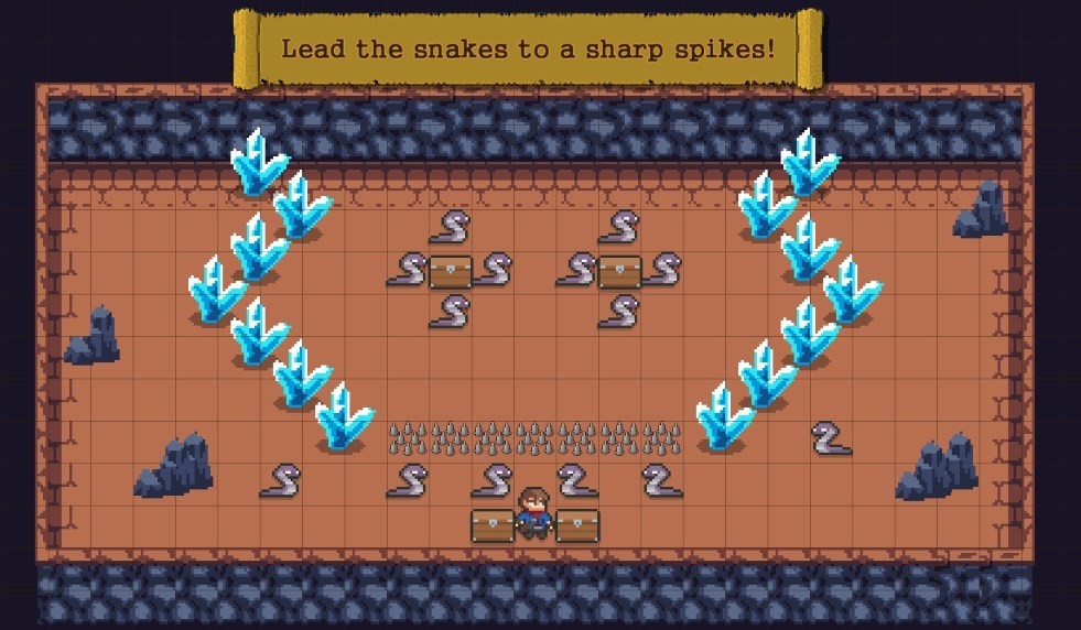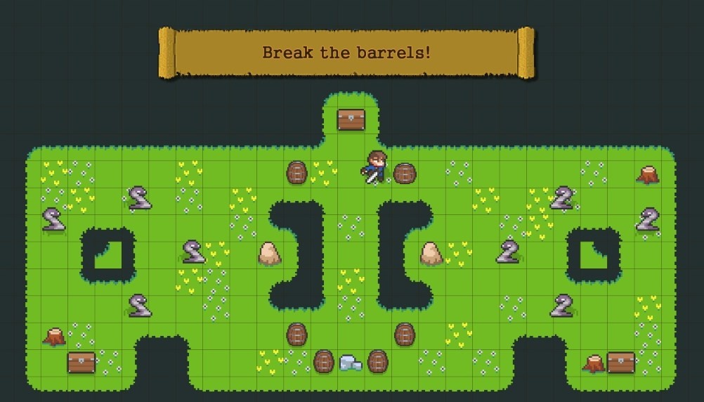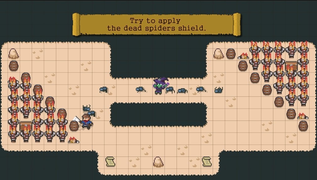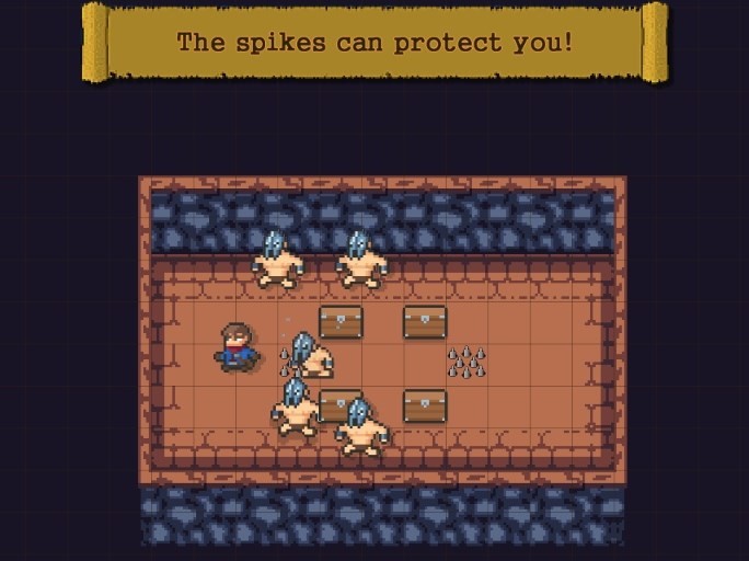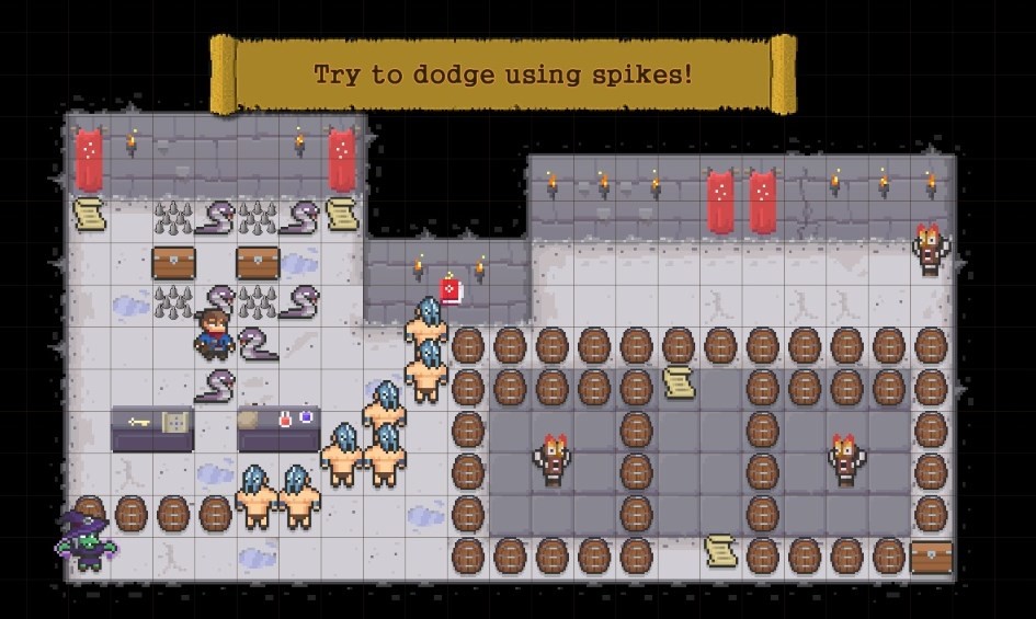 The hero can attack monsters when hero and monster are standing on neighboring square. Avoid being the first at a distance of impact! The hero can't skip turns, but can use level objects - or other monsters - to ?skip? the turn.