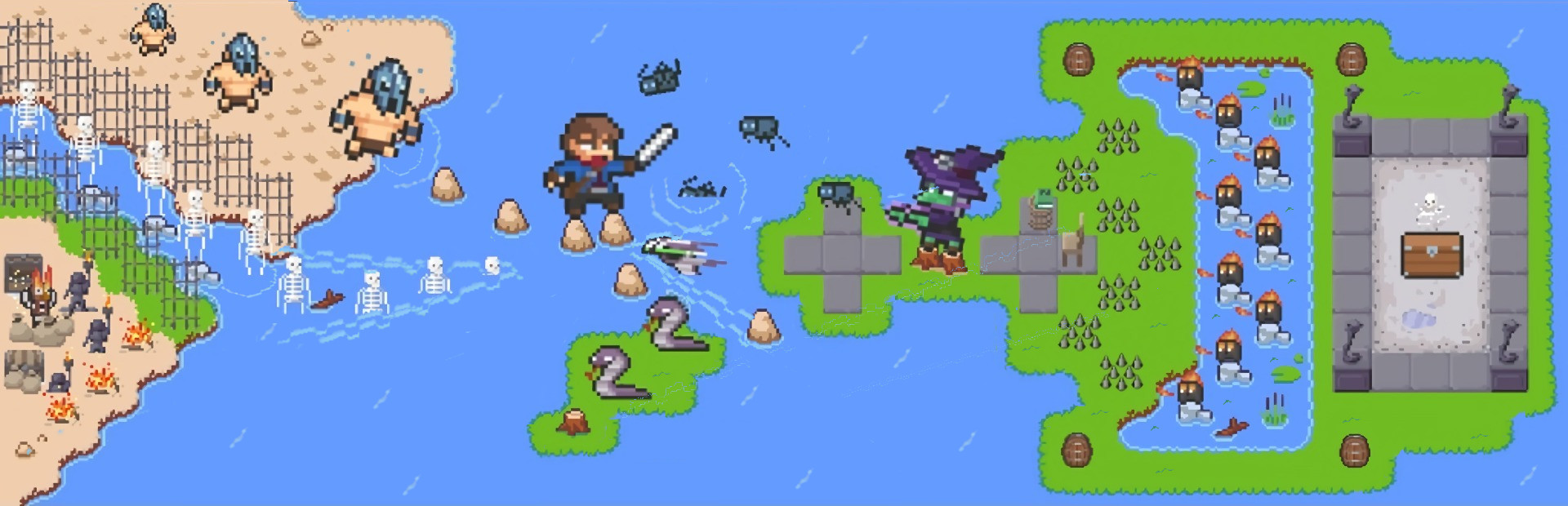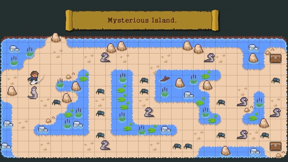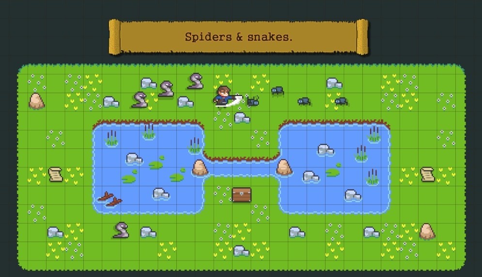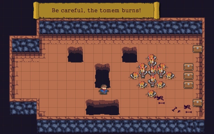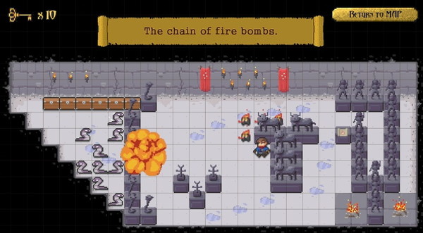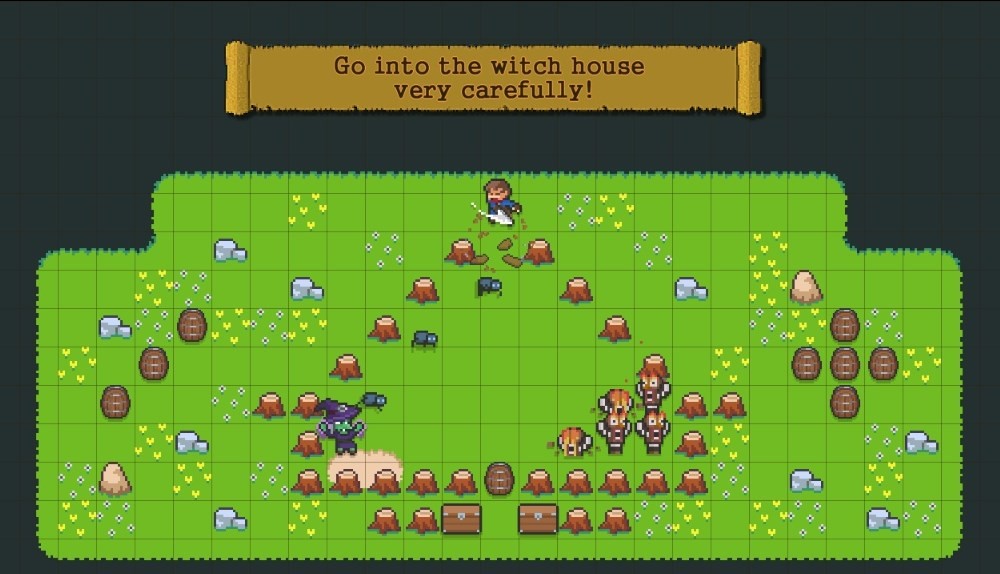 The hero can attack monsters when hero and monster are standing on neighboring square. Avoid being the first at a distance of impact! The hero can't skip turns, but can use level objects - or other monsters - to ?skip? the turn.