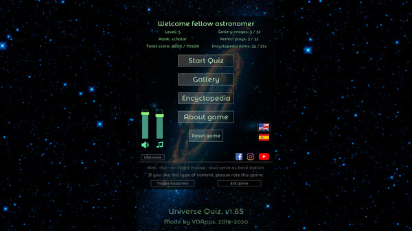 By playing quizzes you unlock more quizzes, gallery items and in-game encyclopaedia covering all fore-mentioned topics. Meanwhile you level-up in game's leveling / ranking system.