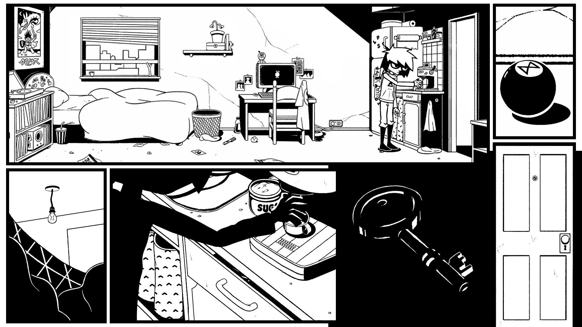 This point and click game is an exciting crossover between comics and a puzzle game. Using the storytelling and design style of comics, the game introduces a new type of challenge where you?ll need to figure out the connection between the narrative and the panel layout. With your help the main character will be slowly led towards breaking through the limitations of the world he lives in.