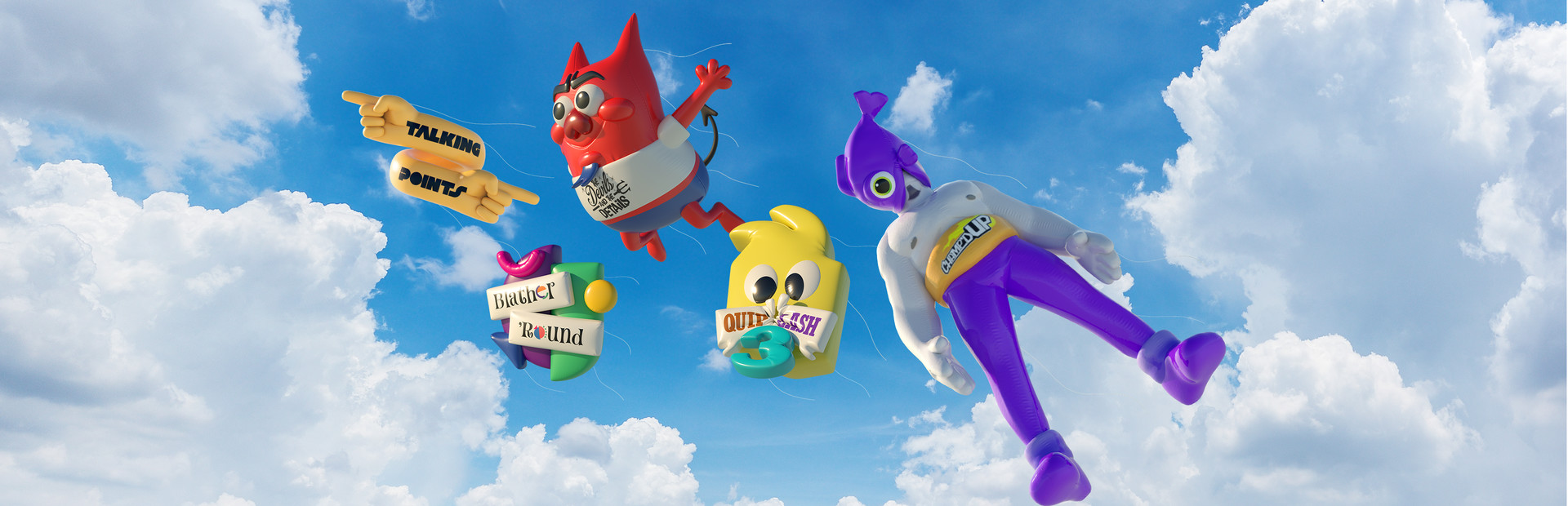 4. The on-the-spot speech game Talking Points (3-8 players). Just keep talking whether it makes sense or not.