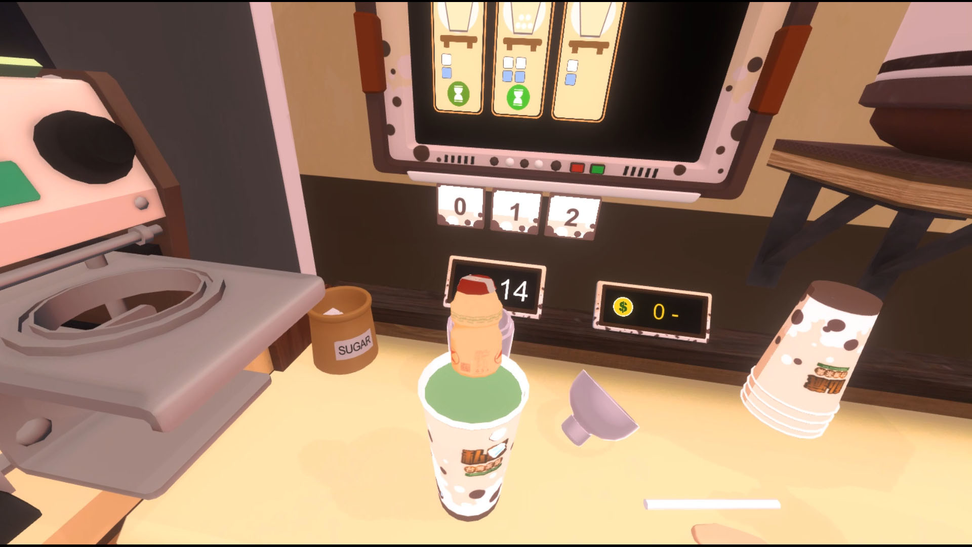 Come experience working as a busy part-timer in Bubbles? Drink Stand VR!