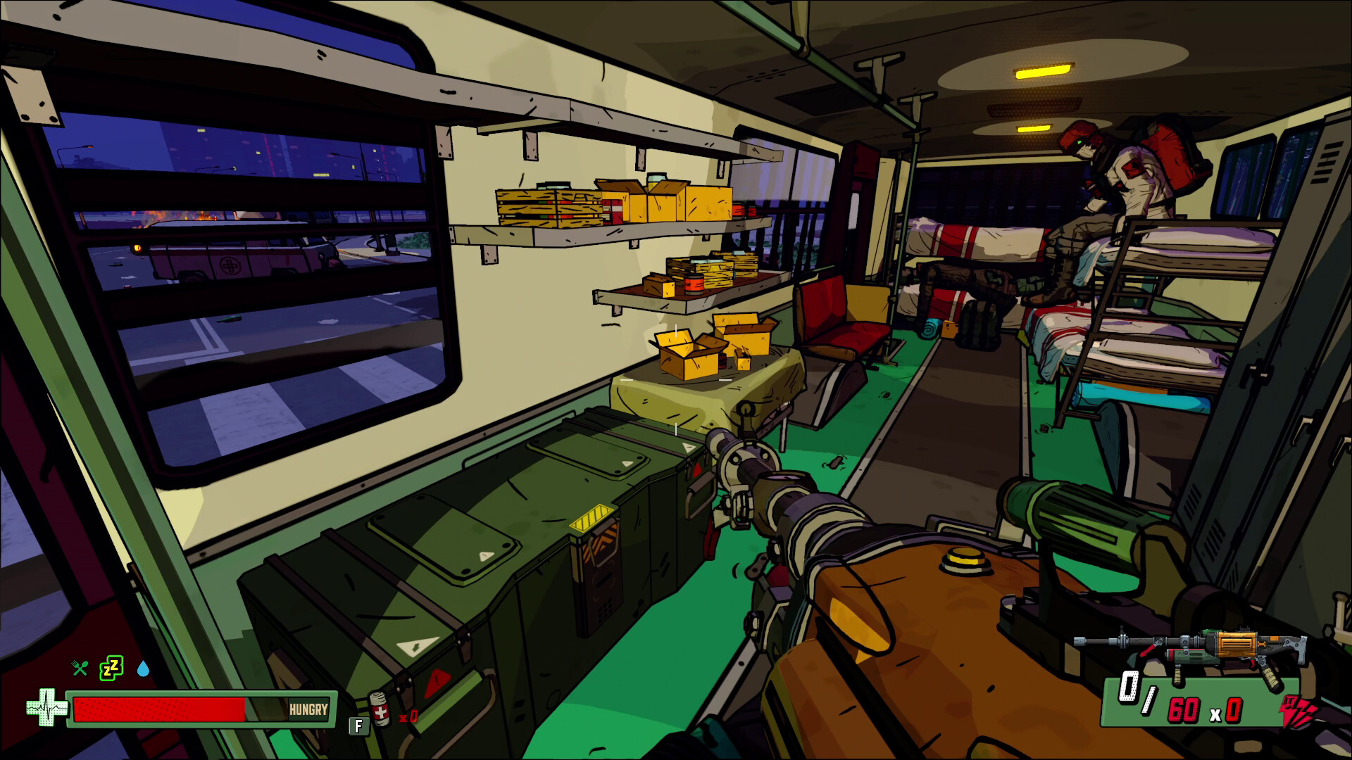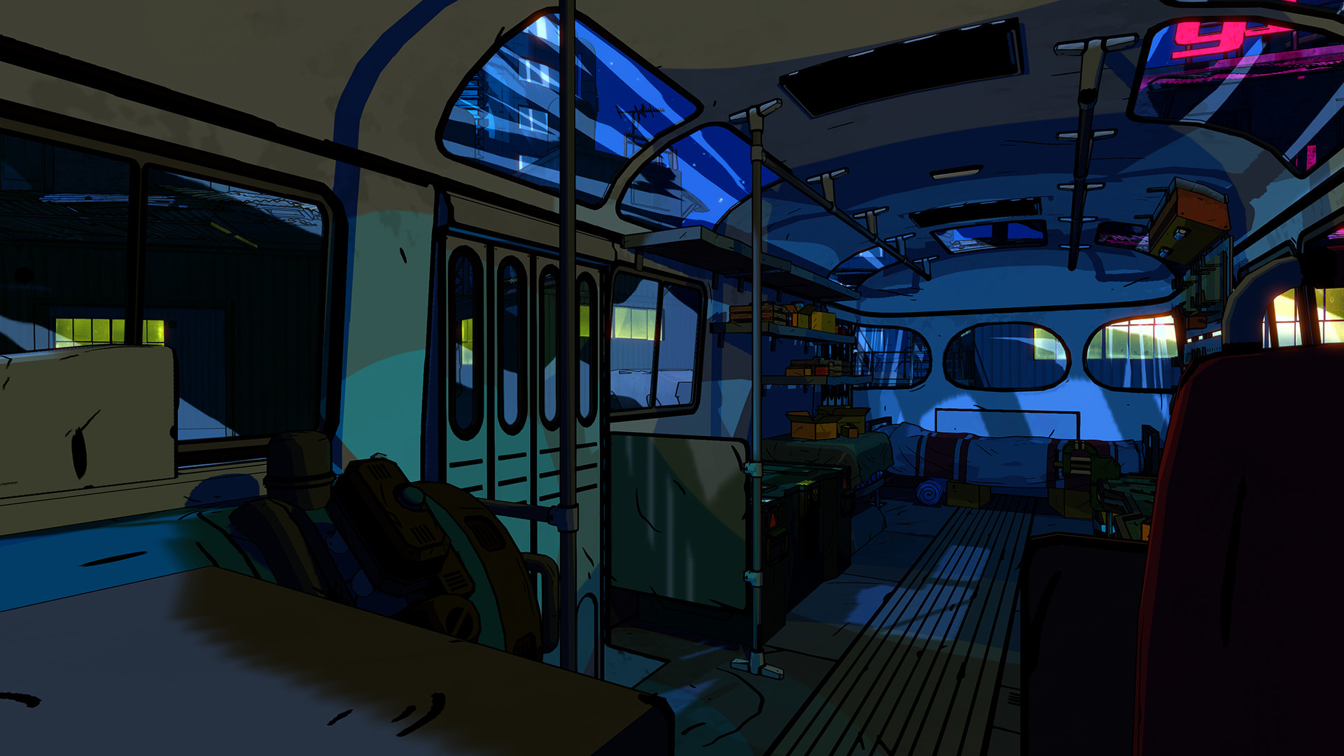 - No matter how hostile the outside world is, you always have your mobile base in the form of a DOM, the bus where you can not only upgrade yourself, but you can also drive it around the city.