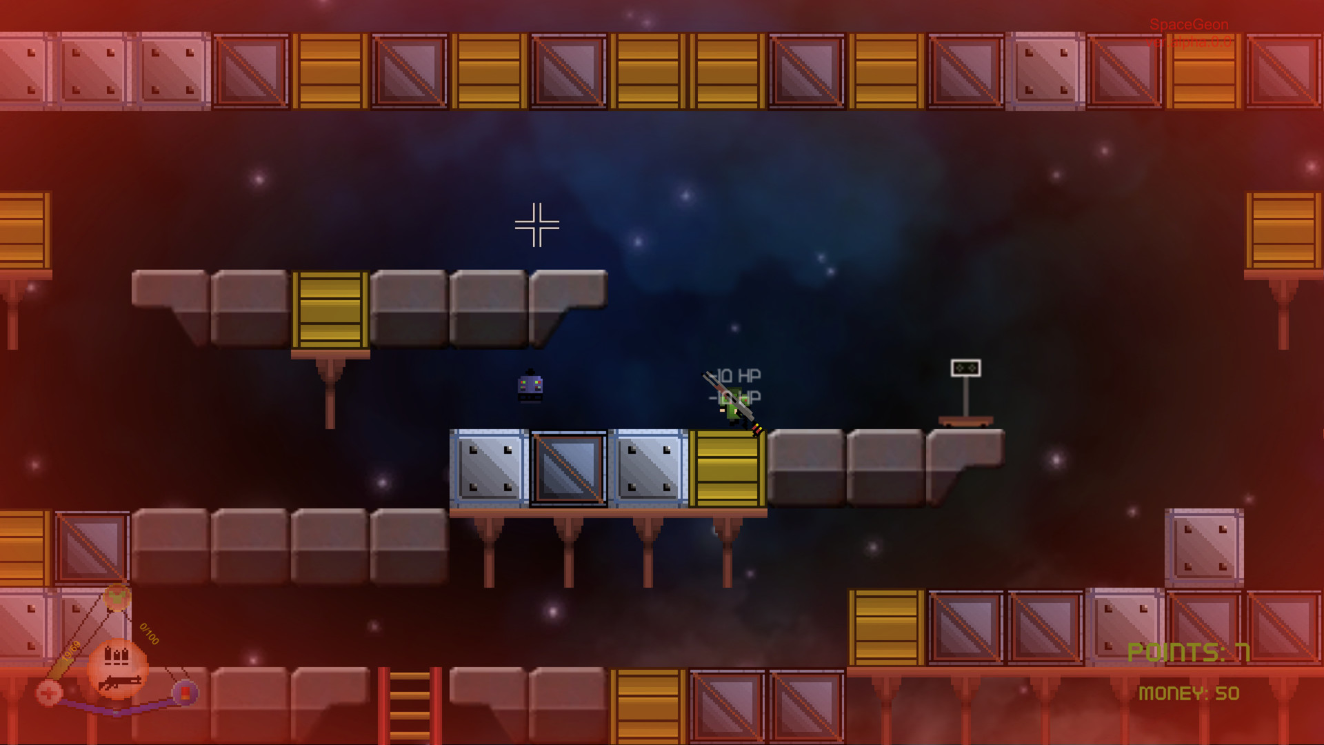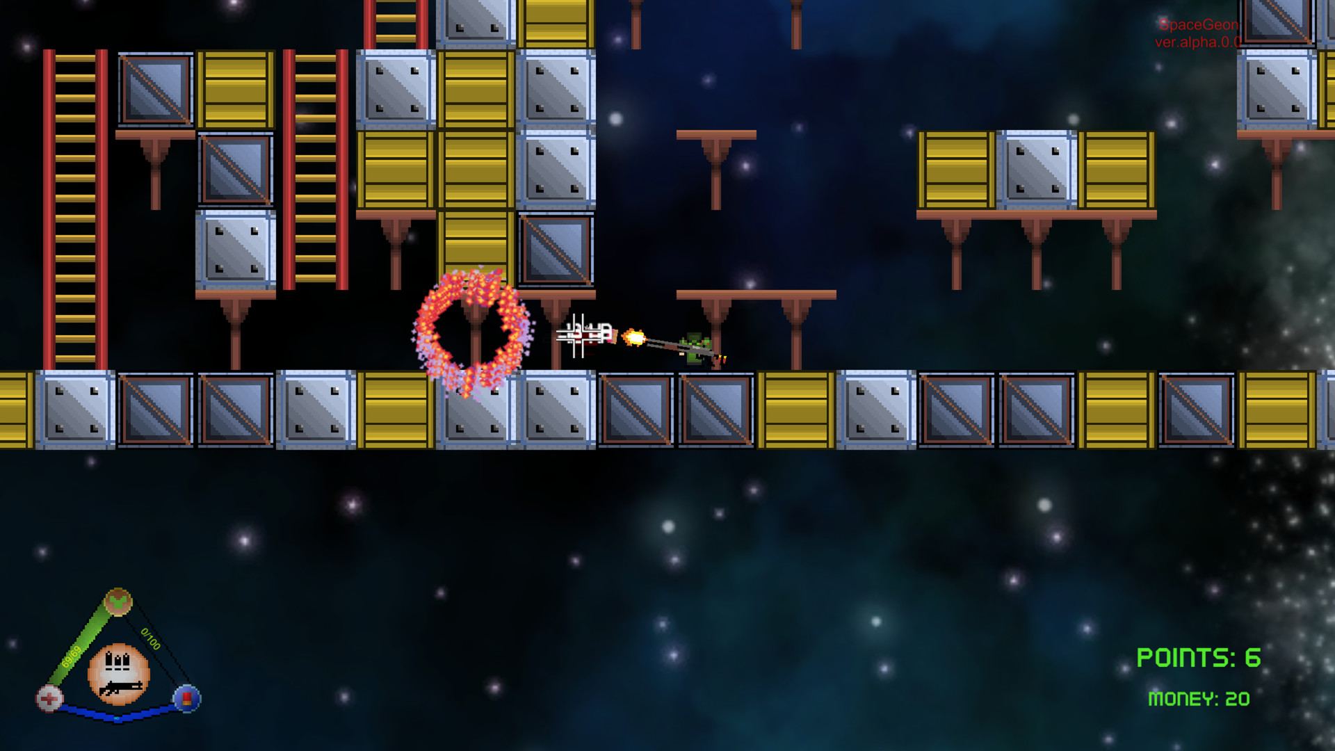 On the current stage SpaceGeon is a colourfull middle-fast-paced 2D roguelike shooter. It includes next features: