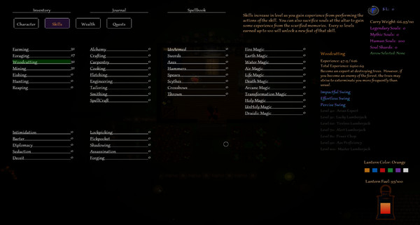 ? Vast skill system ? Master skills by performing them or take short cuts with dark magic and souls!
