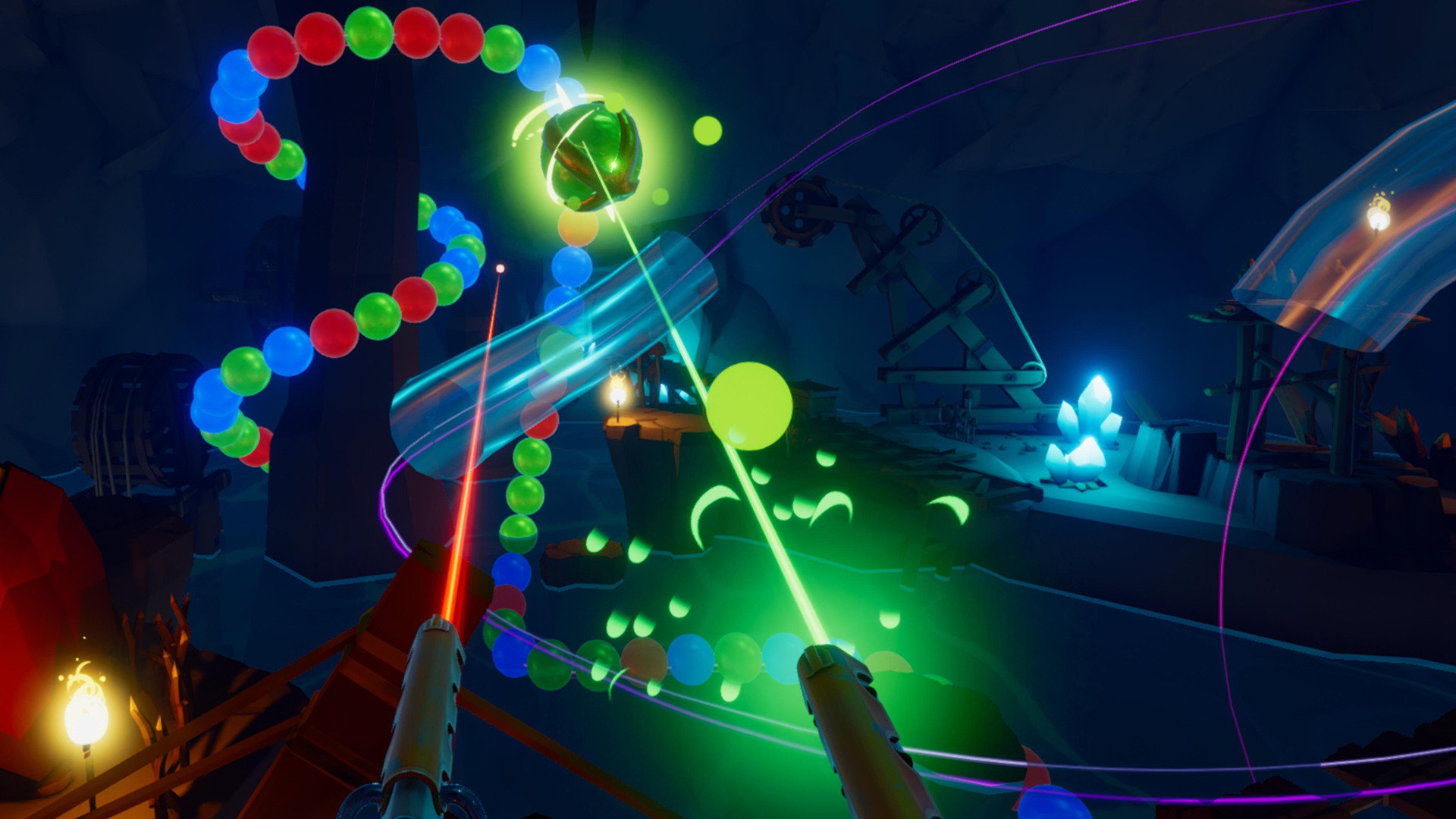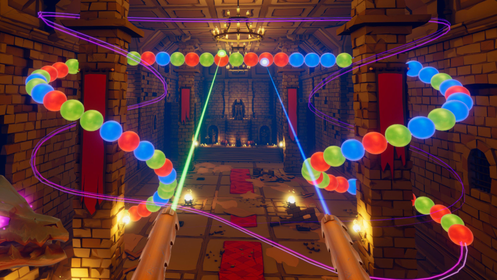 Zu Beginn hast du B?lle in drei Farben: Rot, Gr?n und Blau. Gelb wird auf h?heren Schwierigkeitsgraden freigeschaltet.
