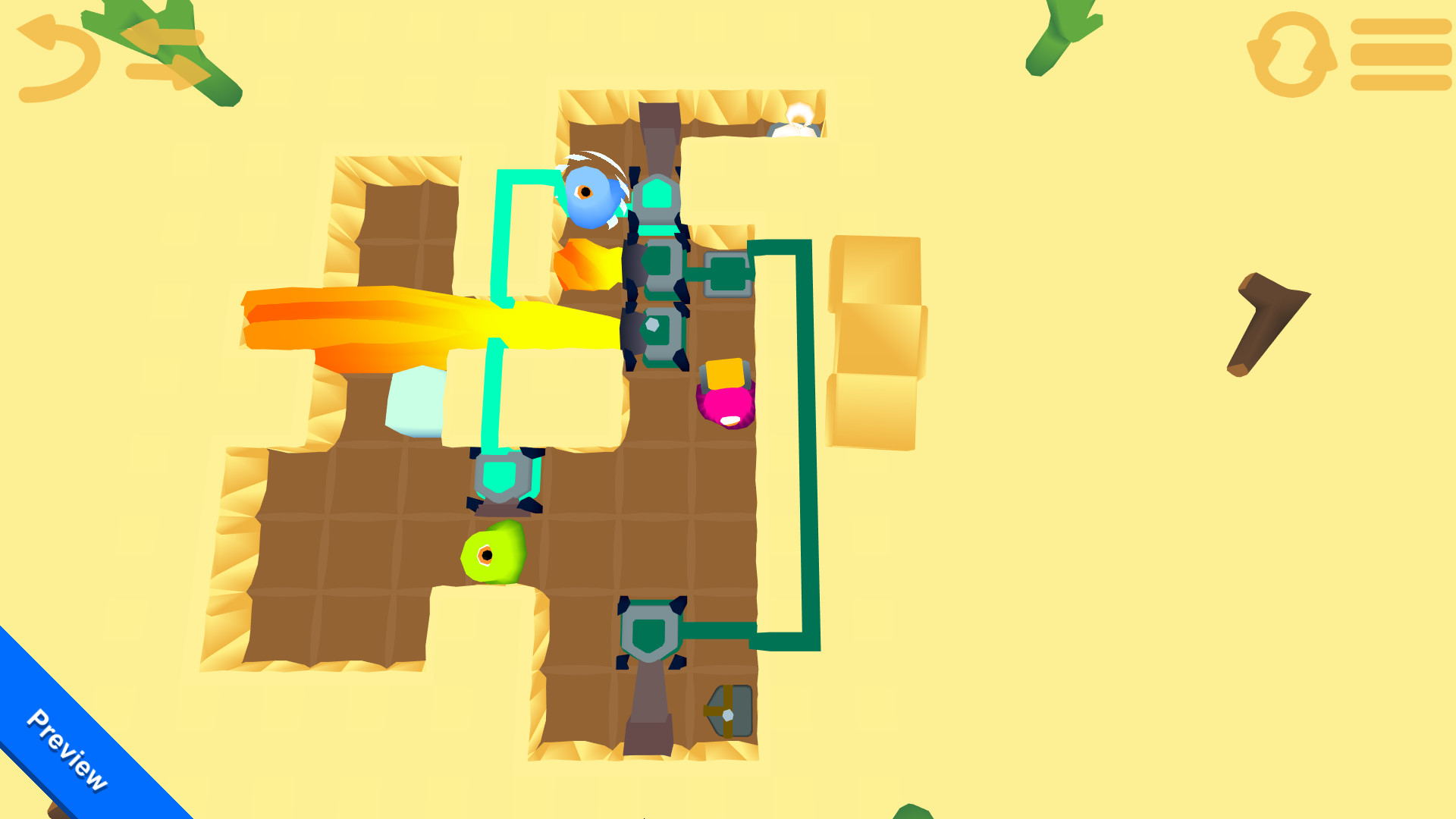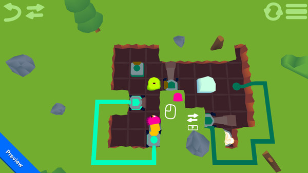 Push cubes, pickup parts, connect circuits and manipulate different devices to overcome each zone. Don't be fooled by their appearance, they're as smart as they are cute.