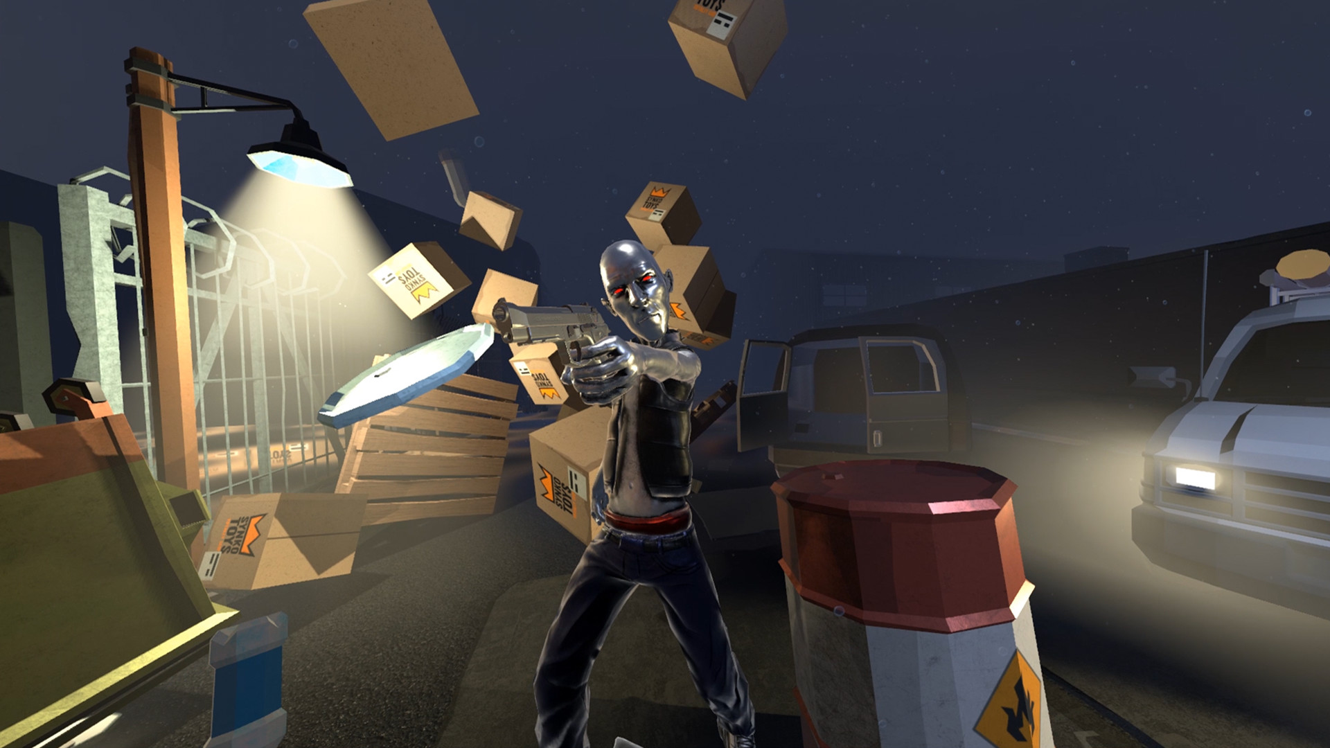 Erkunden Sie die immersive VR-Umgebung und bauen Sie dann "Sprengfallen", die zu zufriedenstellenden "Schlussfolgerungen" f?hren. Sie haben entflammbare F?sser und explosive Zylinder zu sprengen, Ketten zu brechen, Geiseln zu retten, Sch?ssen auszuweichen, die Verkehrsrichtung von Autos und Kr?nen zu ?ndern, Dynamit und Elektroschockwaffe und sonstiges einzuwenden. Achten Sie jedoch darauf, dass Sie alle Roboter neutralisieren, wenn nicht, dann werden Sie am Ende tot sein.