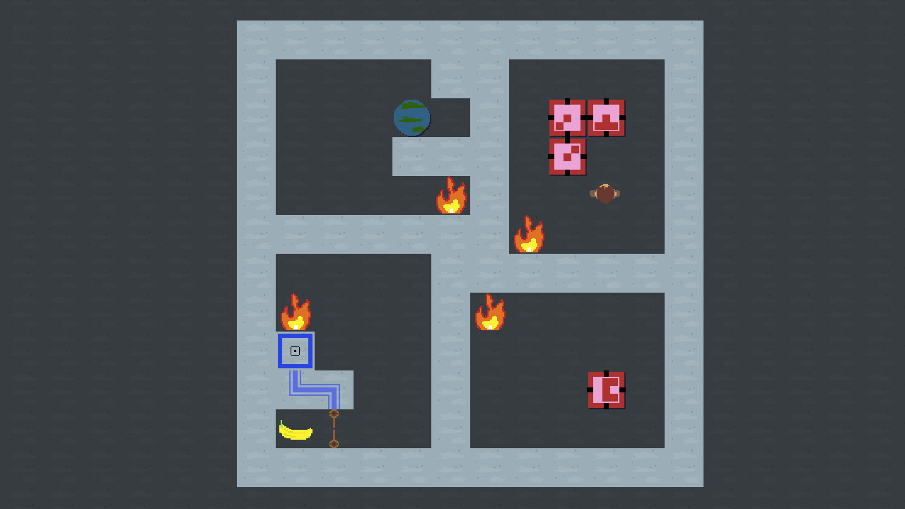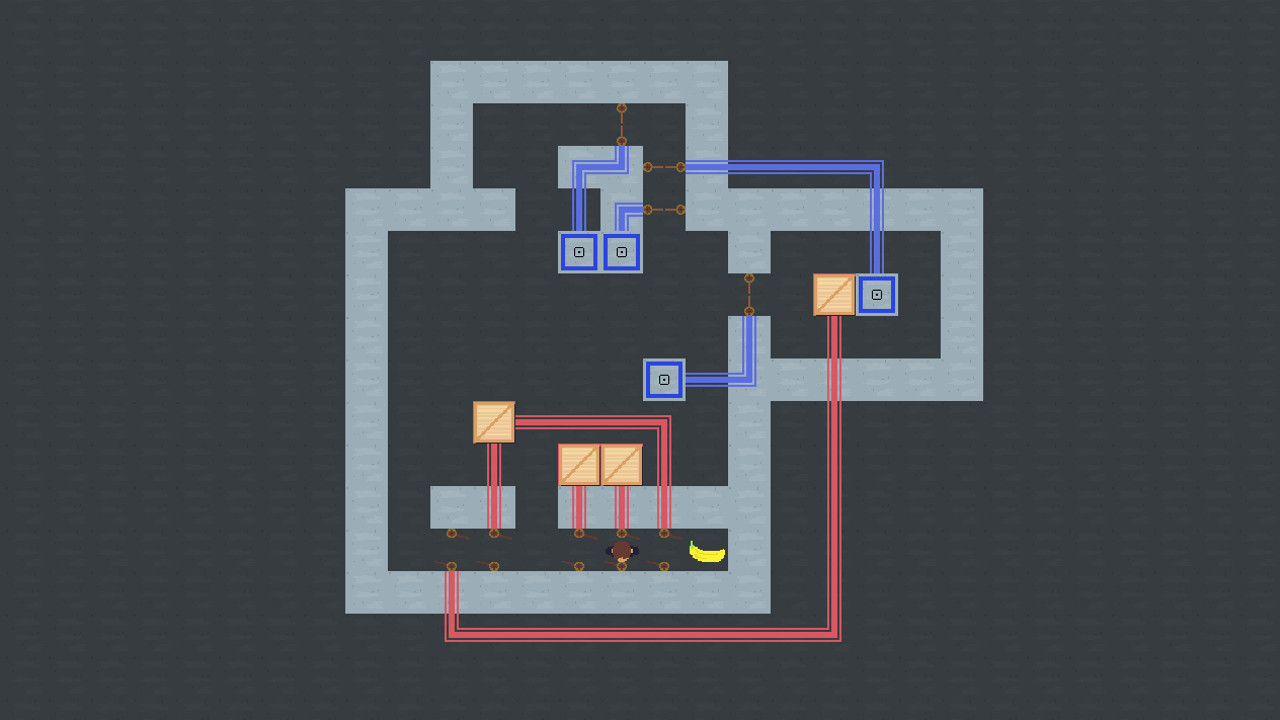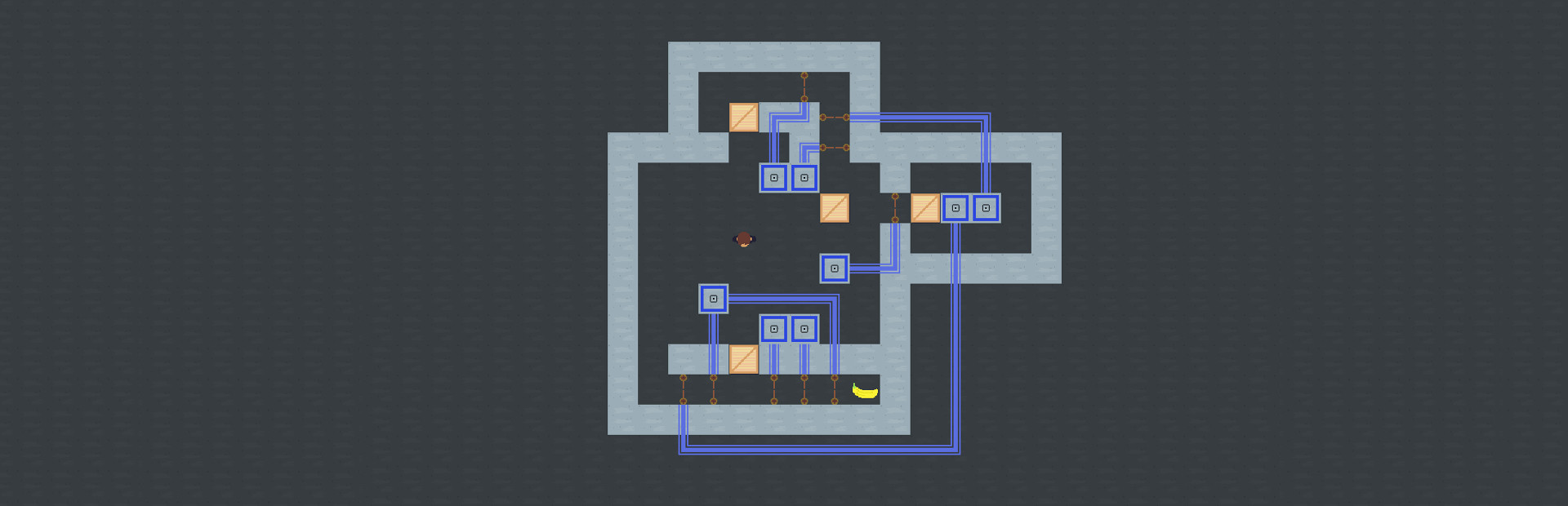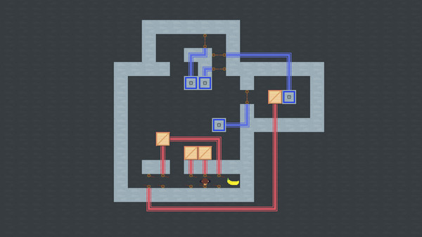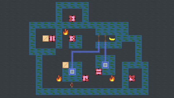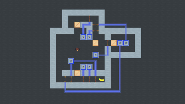 Get the Banana is a Sokoban-inspired game centered around two different but related characters: a monkey trapped in a research project involving a set of puzzles, and a research assistant helping to conduct the experiment. The game contains 12 puzzles involving pushable objects as well as doors, powered wires, fire and explosives, and more.