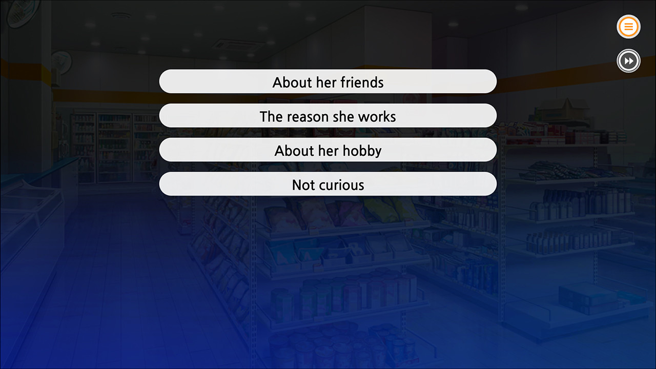 1) Choose the relationship you want to develop while working part-time at a convenience store.