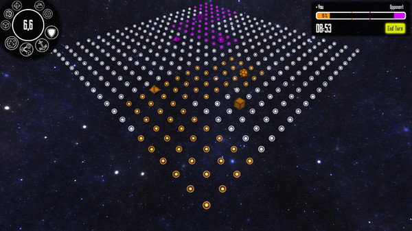 Jump into this deceptively simple game that offers a plethora of strategies and tactics to explore. Immerse yourself in Terminal Singularity's dazzling atmosphere, featuring sharp visuals and a moving audio experience. Feel the thrill of besting your opponent as you race to put your last unit through the wormhole before darkness envelops everything around you!