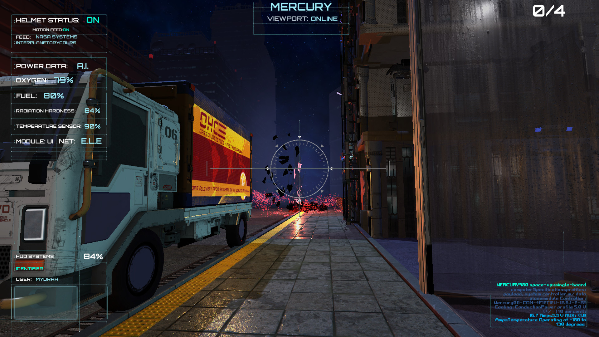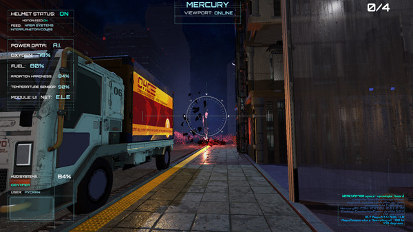 ?A MERCURY RETROGRADE STORY Become the last surviv?r of the Mercury-980 exploration program. Your objective is to find your way off planet Mercury. Complete the spaceship access sequence before the radiation in the atmosphere kills you. Explore the military inner city with harsh radiation conditions, as you decide how to get off this inhabitable planet during retrograde.