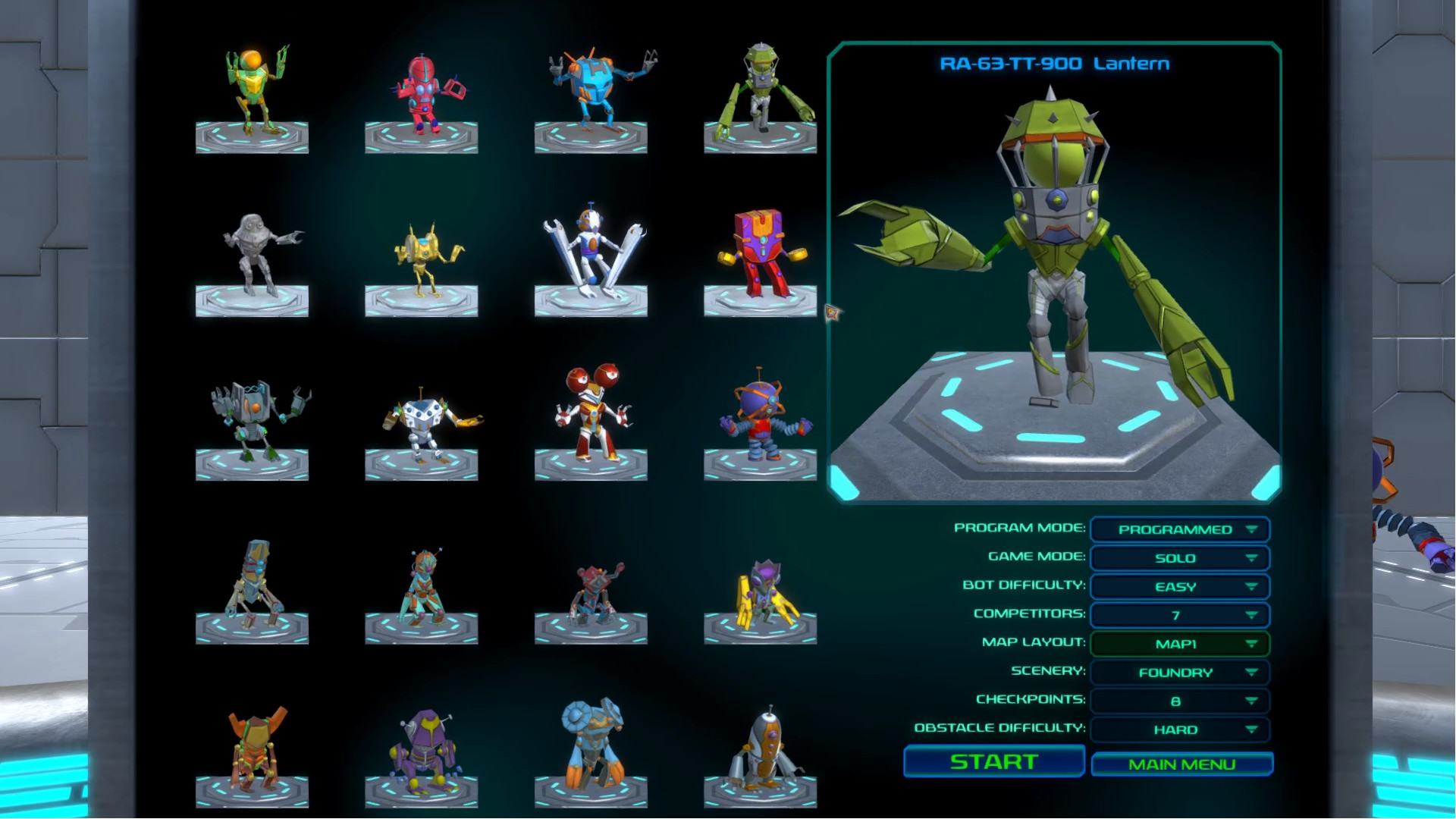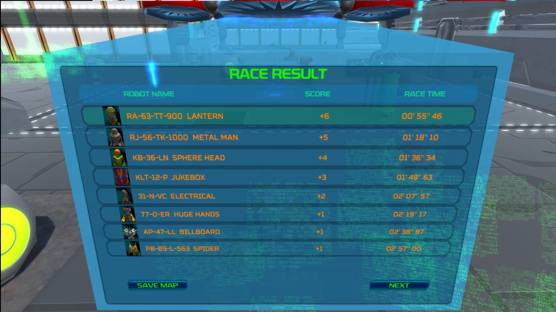 Can you win all the races? Don?t forget to choose your robot model to stand out in the crowd, and also to know which robot is yours. Program, race, win... or be destroyed!