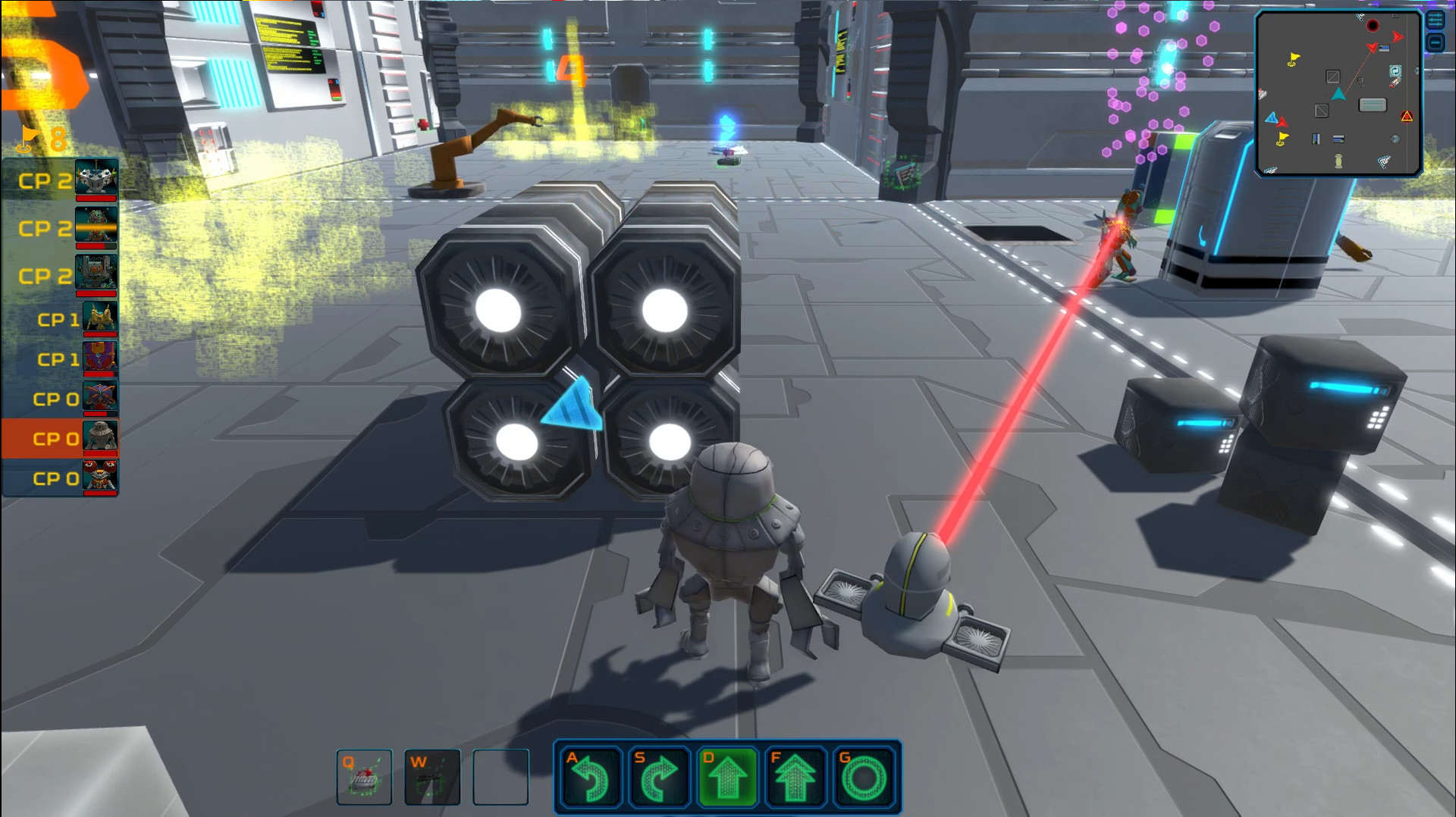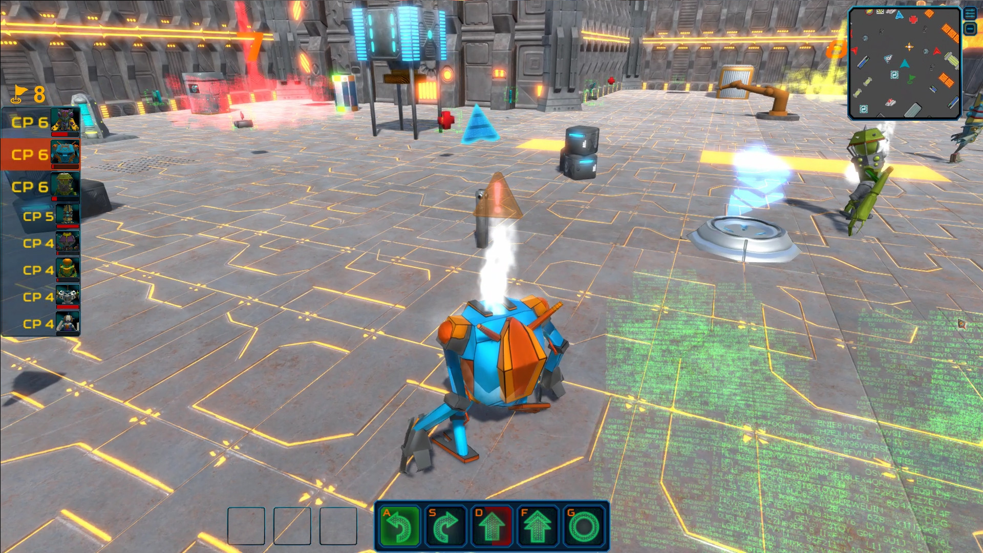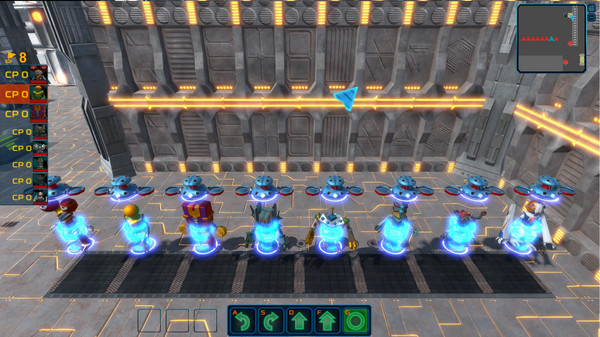 As one of the robots in a factory full of dangers and excitement, compete with everyone to be the best running robot. To make things more interesting, all robots must program their movements while running based on program line instructions cards available at random on their own programming stack.