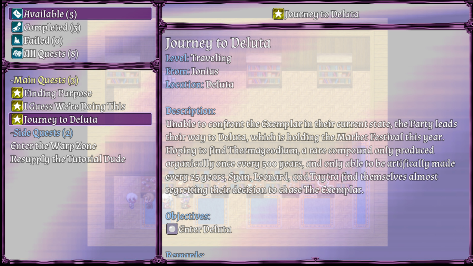 Restoration X continues right after the events of the Restoration side quest in Solenars Edge II: Aurora of The Seventh Dawn.