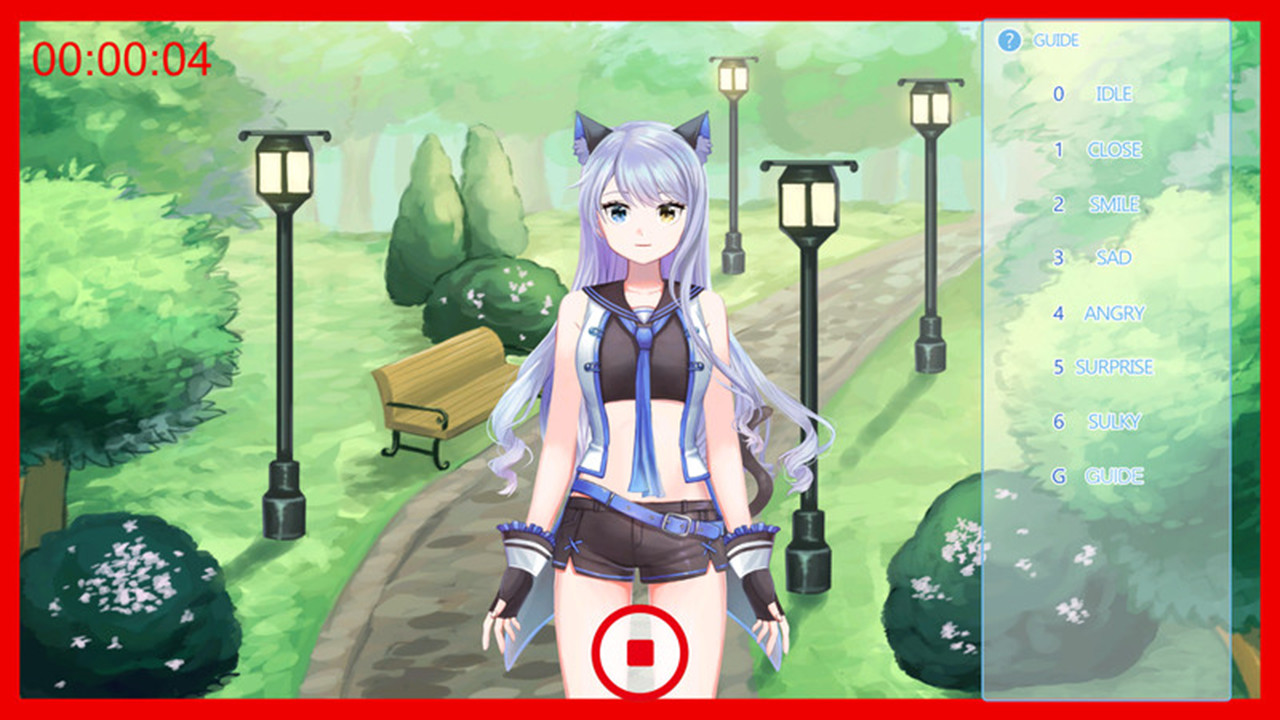 1. Run program. 2. Open the guide. 3. Set the custom. 4. Record. (4-1). Change movement and facial expressions by pressing the key. 5. Check the recorded video within the program folder.