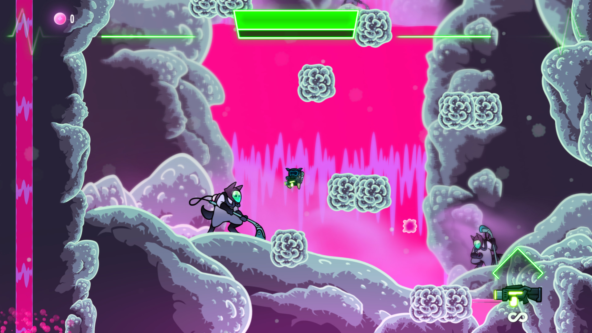 - Temporeicher Sidescroller mit 360-Shooter-Action und all der modernen Spielmechanik, die du erwartest und mehr.