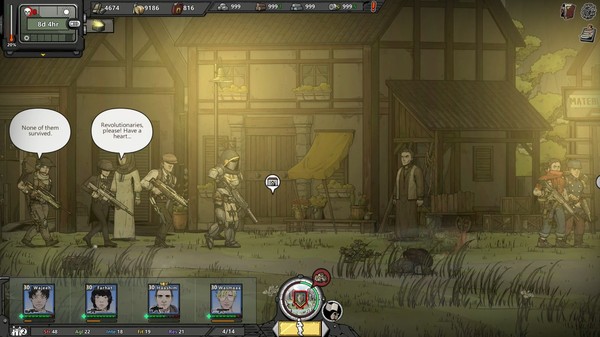 - Baue und verbessere ein Lager f?r deine Revolution?re, was dir erlaubt, Taktiken zuzuteilen, Essen zu kochen, Technologien zu verbessern und R?stungen f?r deine K?mpfer zu fertigen.